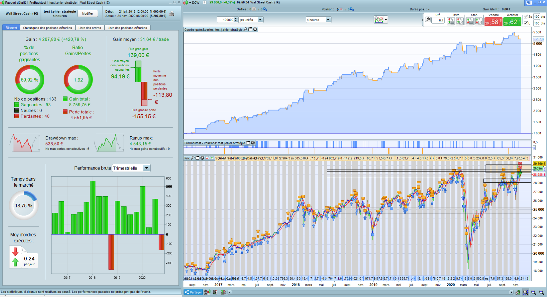 3 – on clôture la position quand l’indicateur est supérieur à 1.91