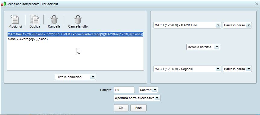 da neofita con la ProRealTime volevo cimentarmi nell’impostare in PROBACKTEST un paio di strategie.