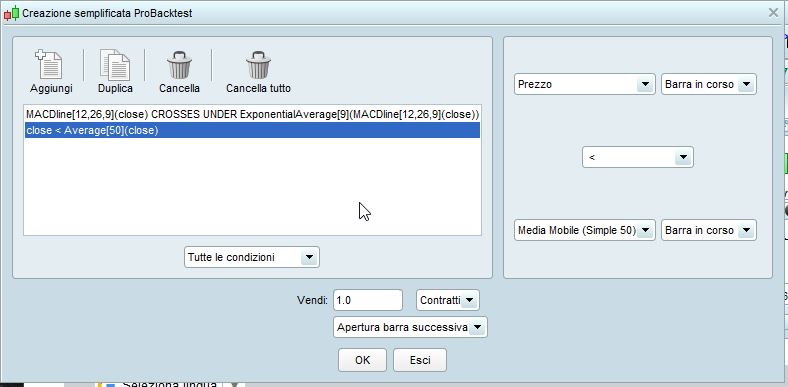 Per il segnale di vendita invece non ho avuto problemi a settarlo ( sempre in semplificata )