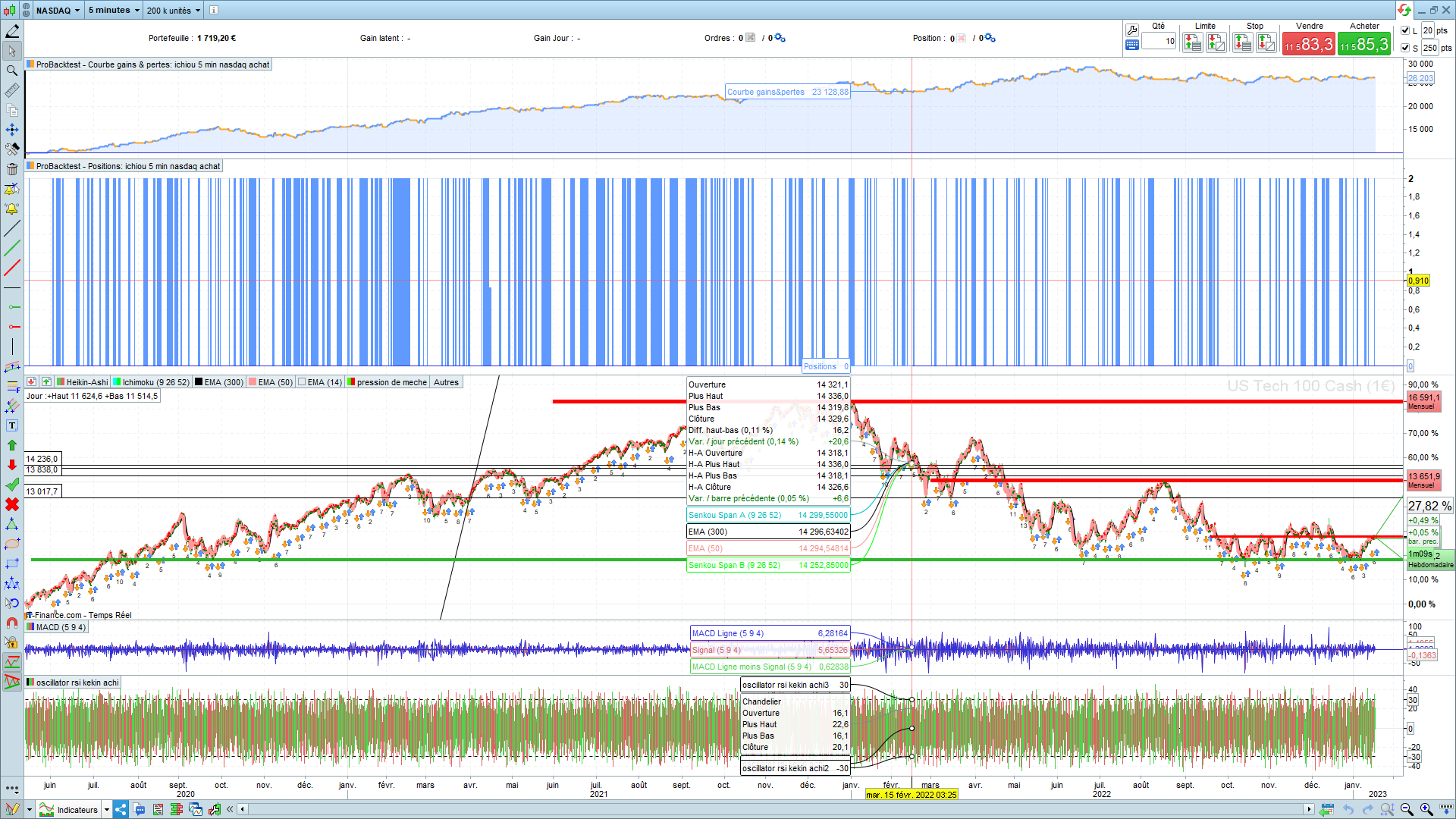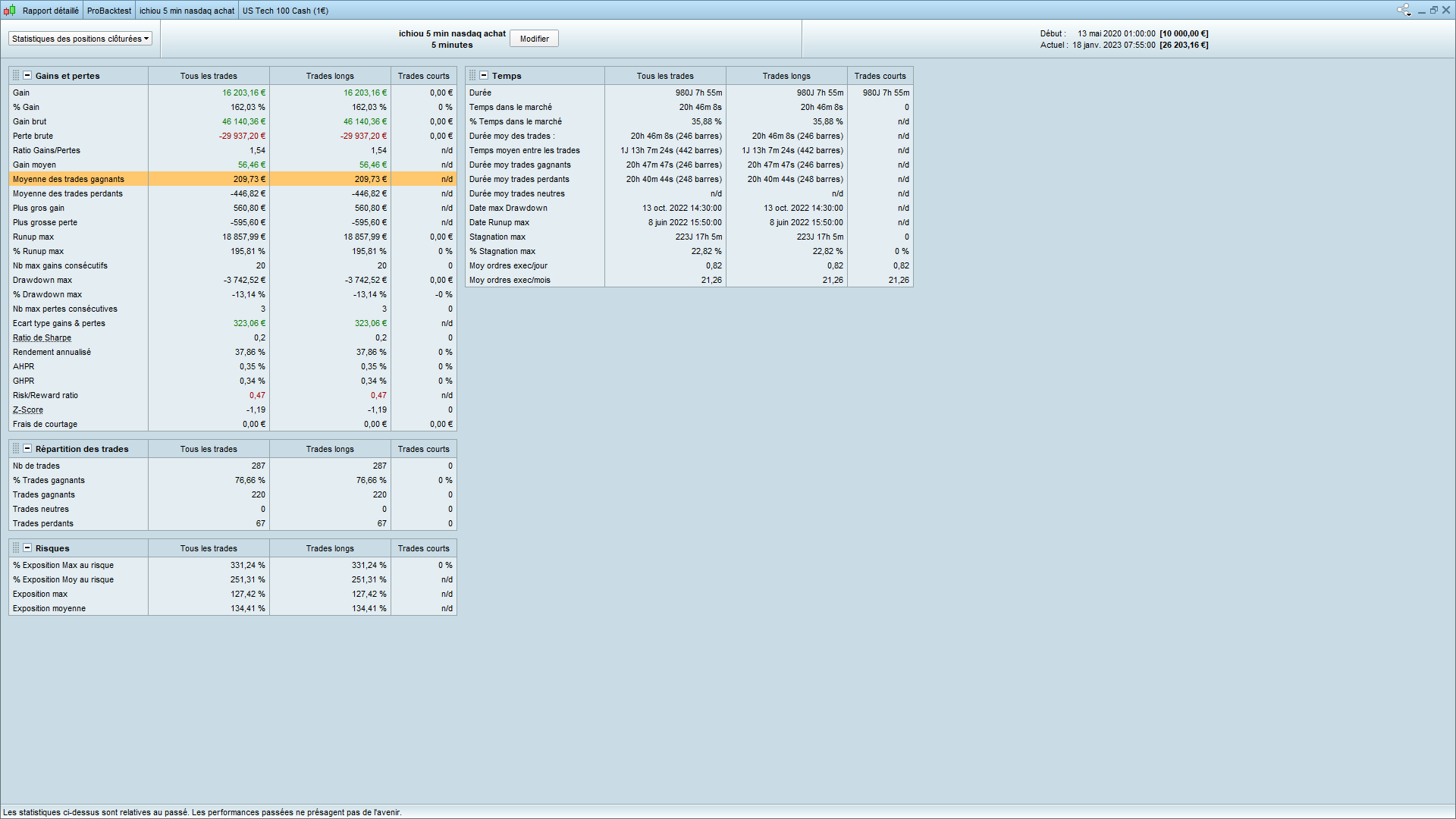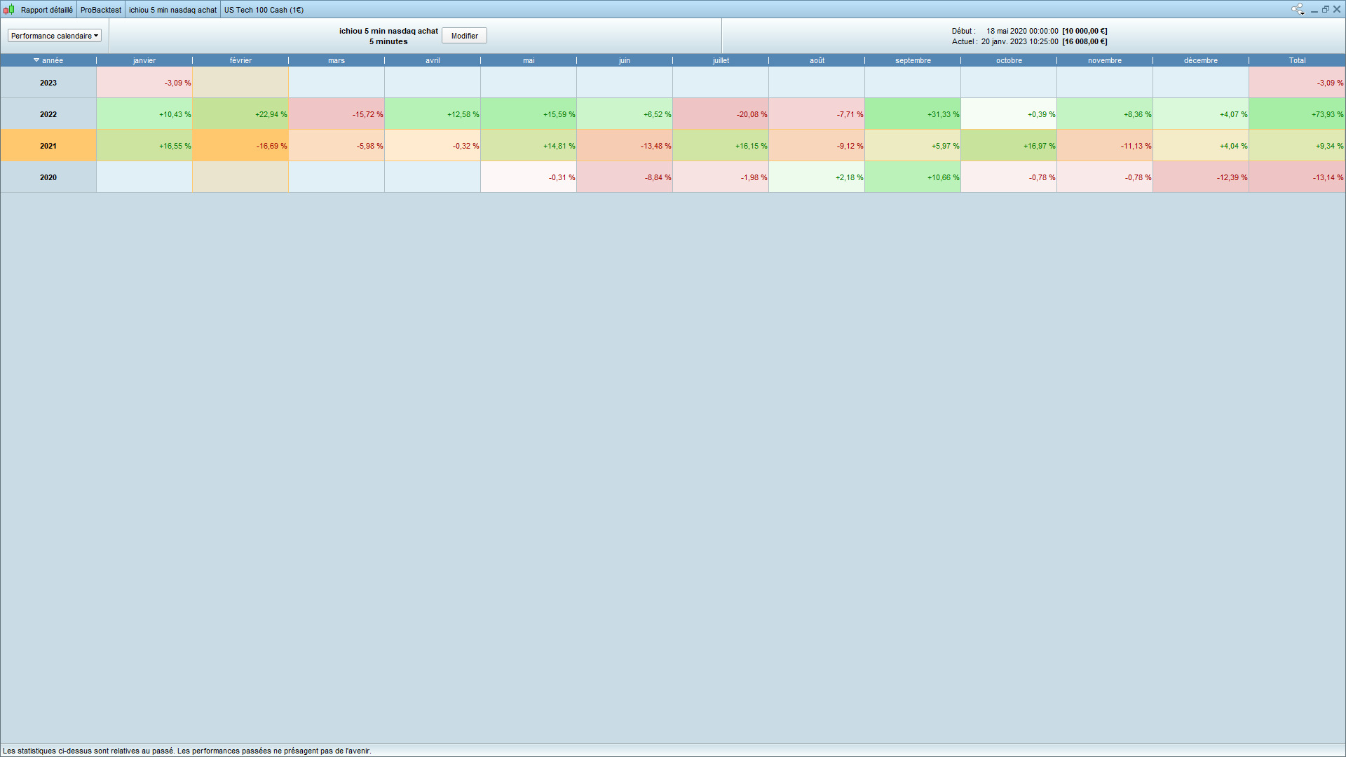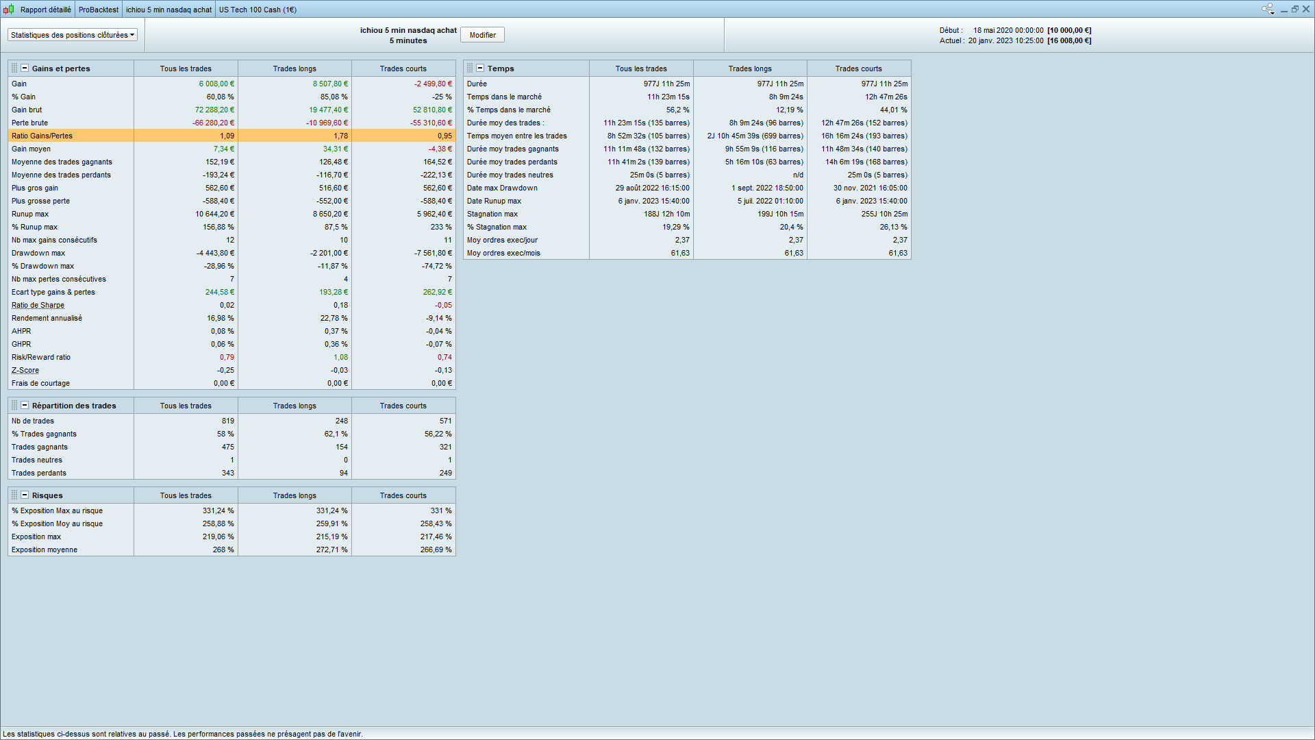 je vous remonte et partage un stratégie sur le nadasq en 5min avec spread à 1 pour capital de 10000 avec 2 contrats, je pense qu’on peut encore améliorer les gains et diminuer les pertes.