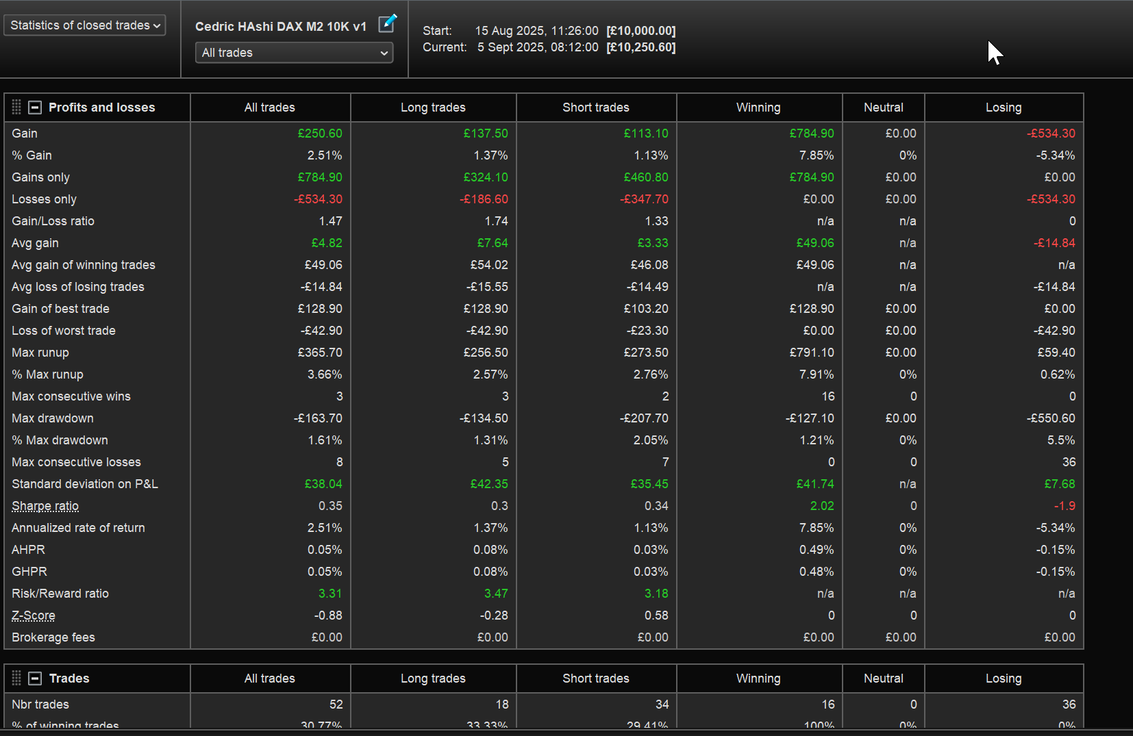 La version ci-jointe (j’ai corrigé l’erreur dans le code ci-dessus) prend les transactions sur DAX M2.