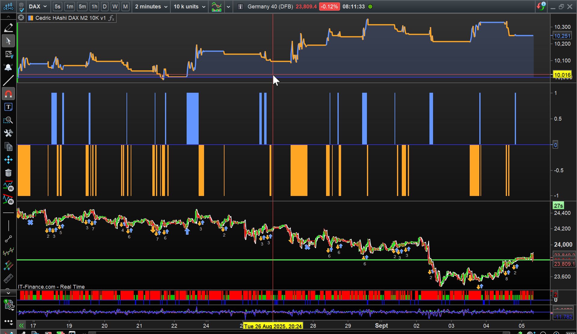 reversalDown = impulseUp[1] AND hesitation AND haClose < haLow[1] // ============================ // FILTRE JOUR & HEURE // ============================