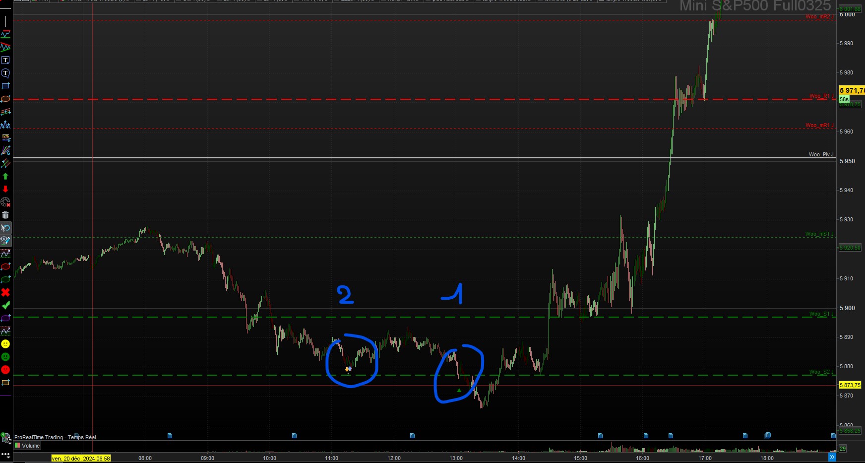 Malheureusement, tout le problème qui se pose est que je réplique sans problème le point pivot woodie mais lorsque je souhaite l’utiliser en stratégie automatique le code DClose(1) ne renvoie pas le même niveau de Close. C’est très énervant et cela fausse complétement les résultats de n’importe quelle stratégie qui se sert des points pivots.