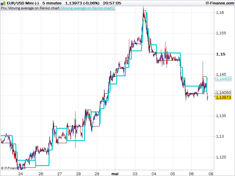 2/ on a donc créé un indicateur qui permet de le simuler (du mieux possible) sur un graphique en chandelier ordinaire : http://www.prorealcode.com/wp-content/uploads/2016/05/Moving-average-on-Renko-chart-1.itf