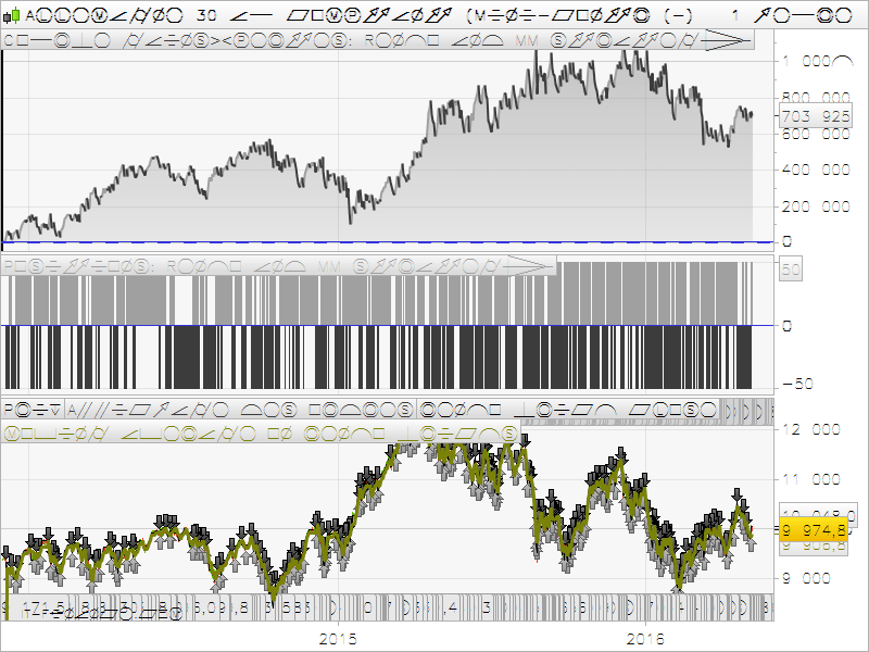 J’ai revu le code de la moyenne mobile sur le graphique. Le code ci-dessus issu de l’indicateur de Doc crée des problèmes pour le moment, je suis donc reparti du premier publié dans la librairie d’indicateurs du mois de Mars (vous le trouverez ci-joint attaché). Il n’est pas utilisé dans la stratégie en l’appelant avec un CALL mais y est directement intégré, c’est simplement pour visualiser les trades sur le graphique, en corrélation avec la stratégie.