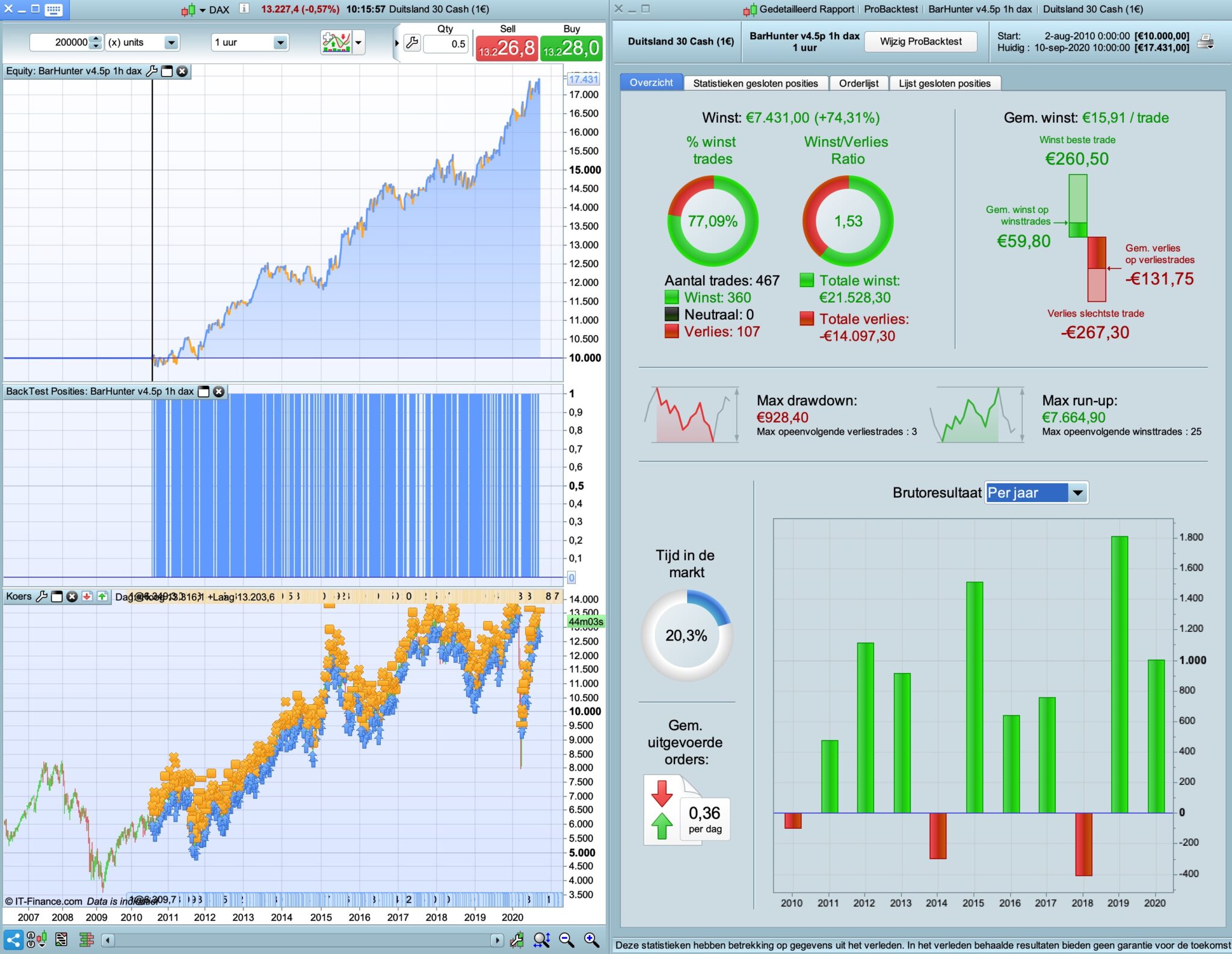 Those results are not good enough. I’ve converted barhunter strategy quickly to the concept of vectorial but because of removing a lot of criteria the strategy didn’t perform anymore. I will leave it as it is atm.