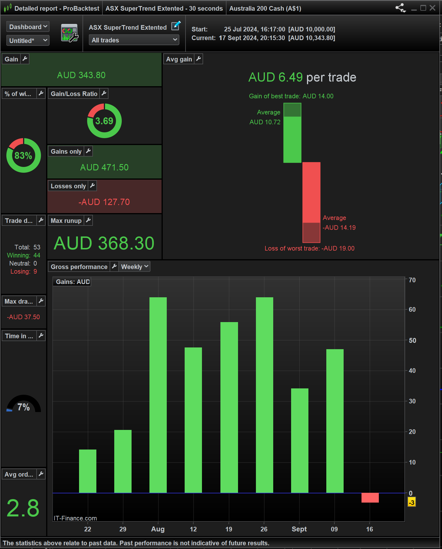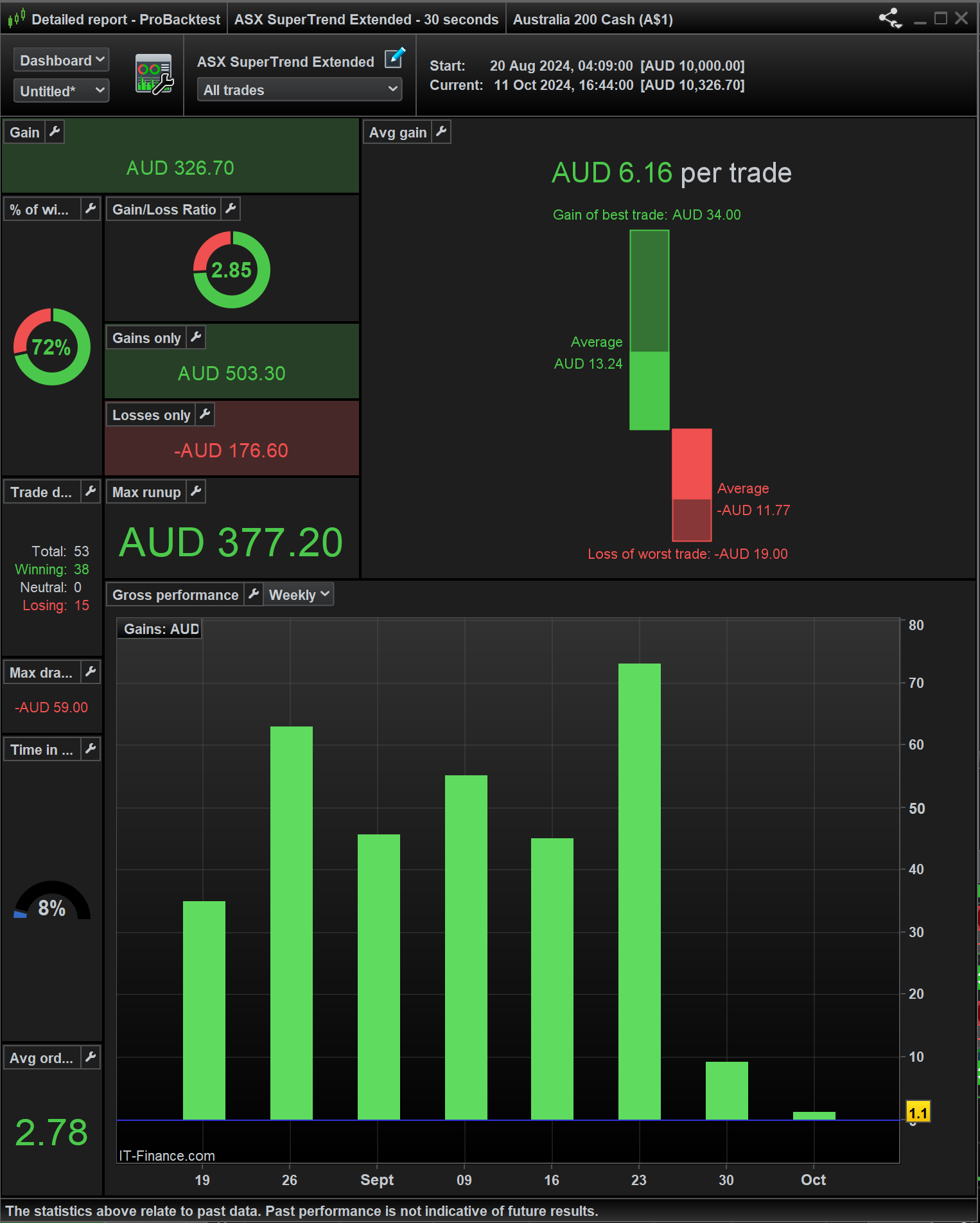 The last few weeks have not been as good . I have modified the code for which I posted the the detailed report butIneed to find a way to improve the results when the price is trading sideways on the 30 sec timeframe .