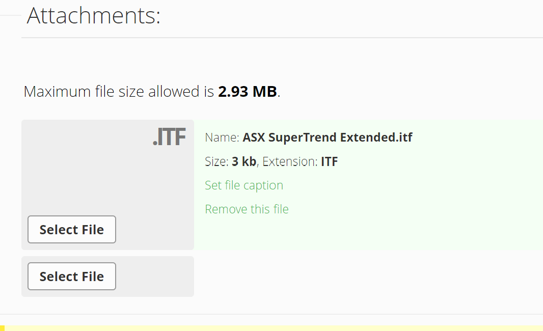 After getting to the stage shown in your screenshot, i.e. .itf already attached … all you should need to do is to click on ‘Submit’ at bottom of page.