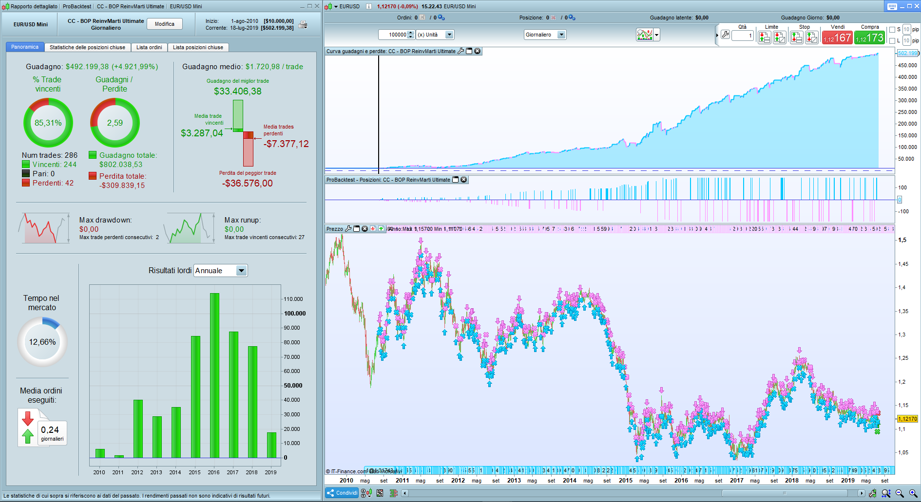 thanks roberto, currently I have suspended the prorealtime platform with IG in Reale, so the test is with 100000 bars. You could send me a screenshots to see the DD, it doesn’t come out to me. thank you