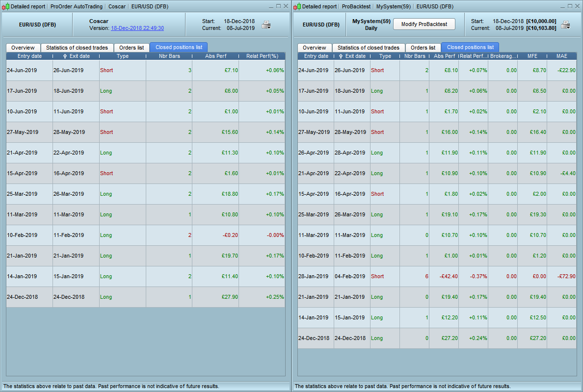 My demo account had several issues that meant that the strategy was stopped several times and many of my strategies went through a long phase of not opening positions – although I can’t confirm that this was one of them but because of all this the trade quantities are different and my live version missed the biggest loser. Despite all this the strategy seems to have traded pretty well so far.