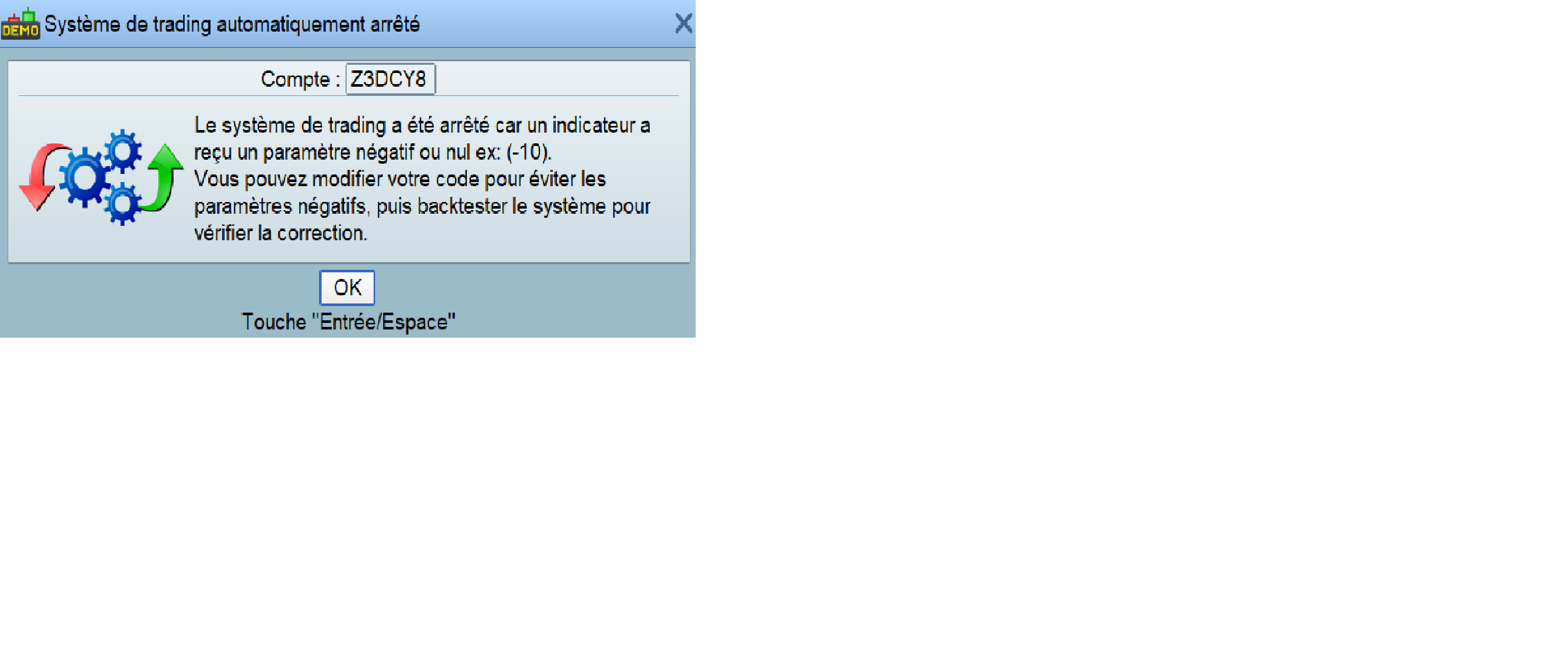 The EA take an position, and after 1 minute, he closed the position and give an error (the system received a negative parameter or nul )