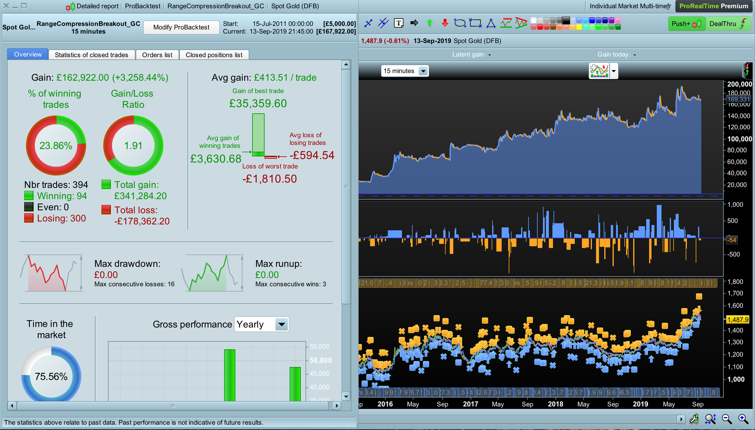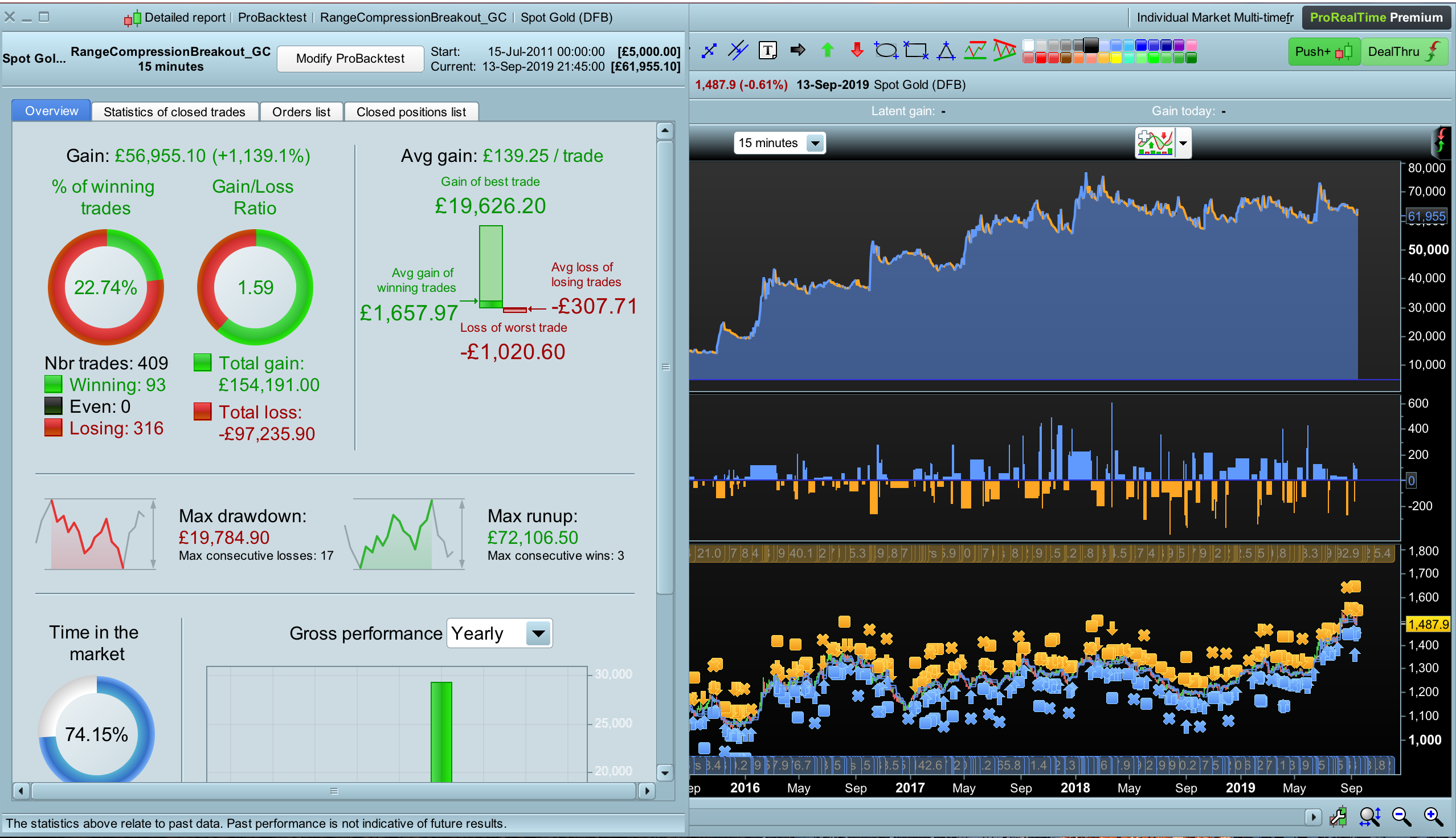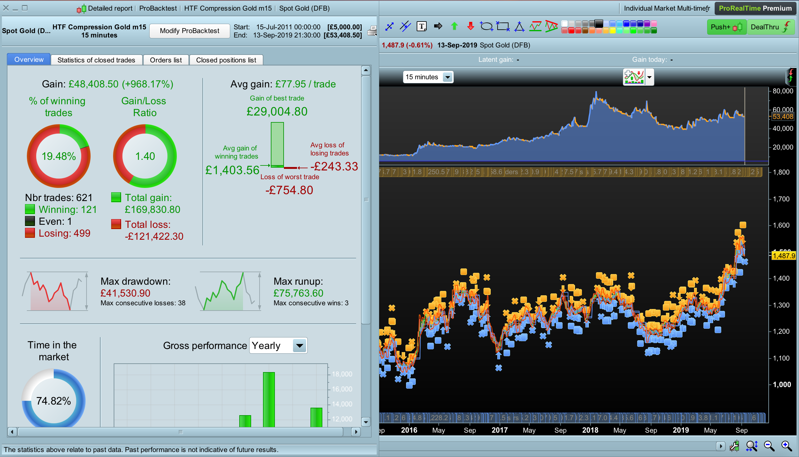 The strategy also performs on Silver, Crude, DAX, Bitcoin but the loopback periods need to be adjusted for each market.