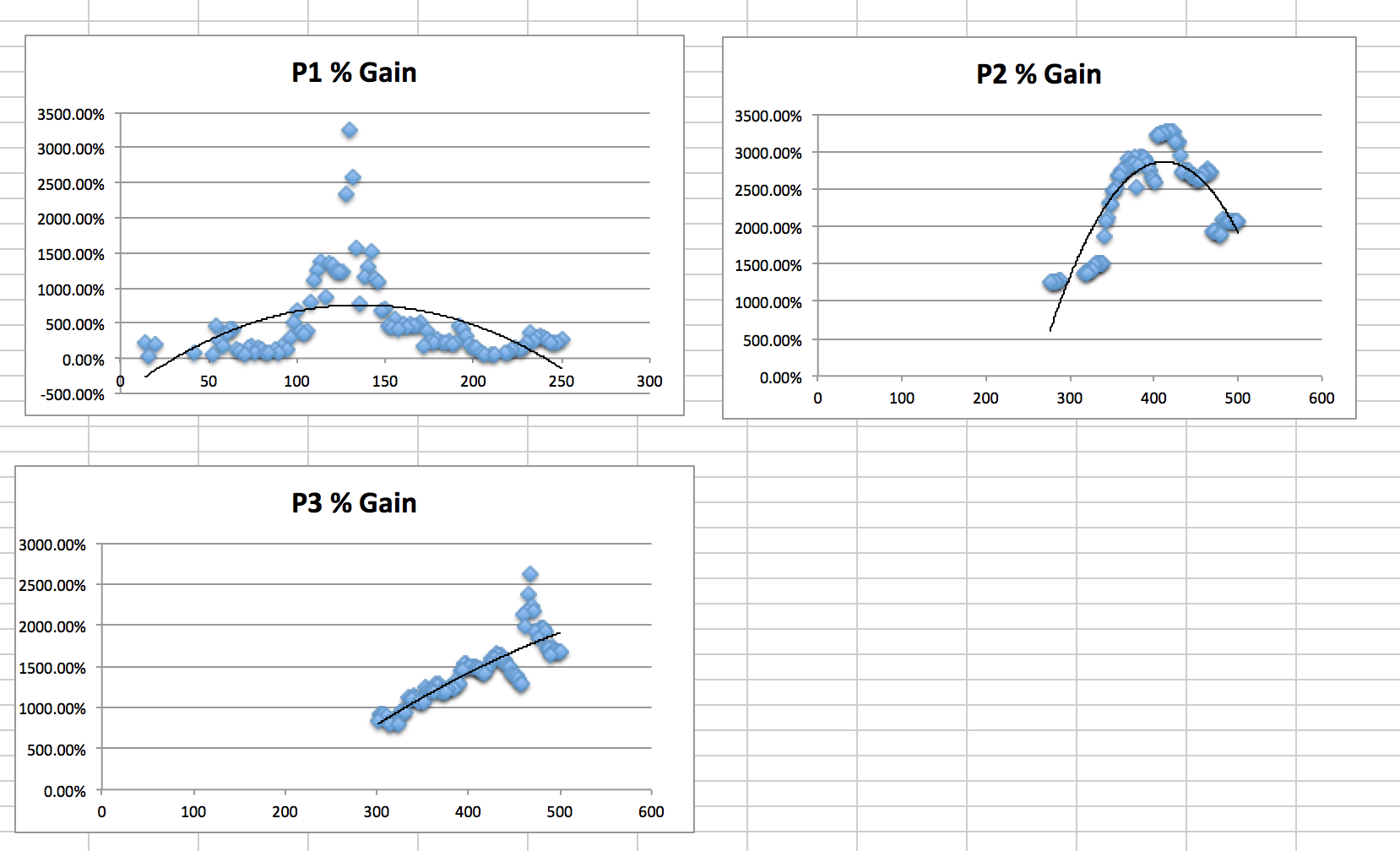 The peak in p1 is concerning but without knowing what the variable was applied to it is impossible to say how concerning. If it is a simple MA then yes it is possibly very fitted. If however it is a much more interesting calculation and it works almost exactly the same on a variety of markets then we can forgive it the spike where it works best – as long as it is the same or a similar spike on a lot of markets.