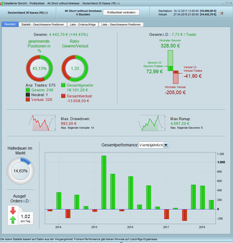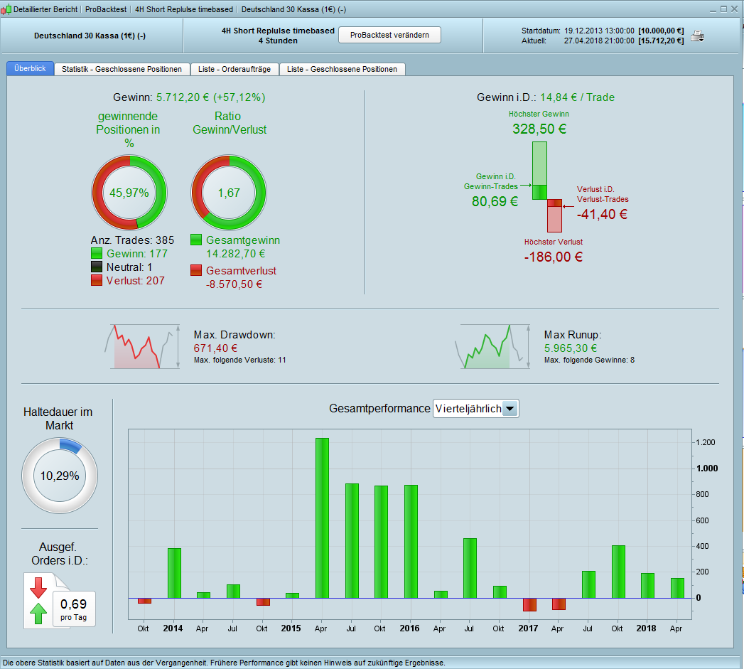 It is a relatively simple strategy, but only short. And this in rising markets. With only a few indicators and easy to understand. Like all trend-following systems, it clearly has problems with sudden changes of direction and in range phases.