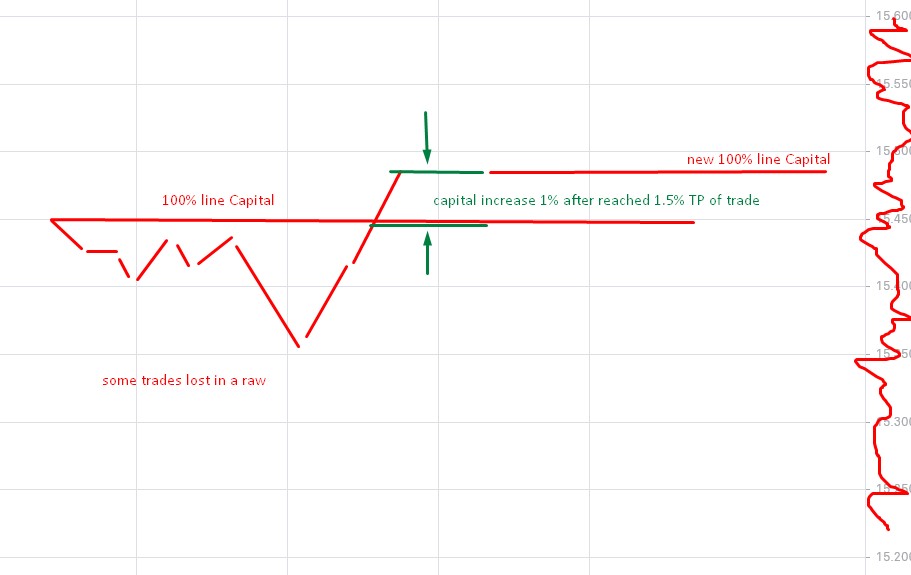 But we also need to check whether myProfit >0 and the new capital exceeds 100%. We must not set the capital to 100% after each trade won, but only when we have won the trade and the last reached 100% are exceeded!