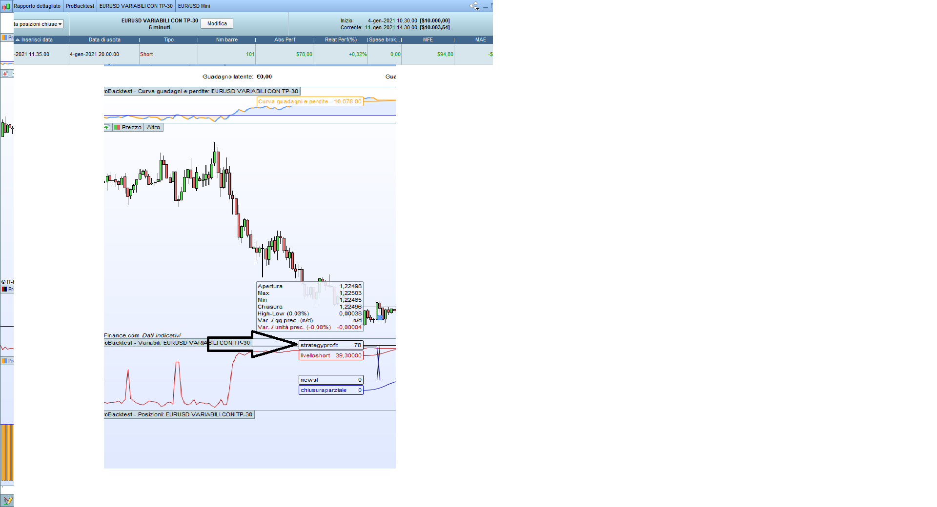 Sapevo che il profitto della singola operazione è espresso nella valuta propria dello strumento, ma pensavo fosse convertita per aggiornare il totale della strategia, invece non è così.