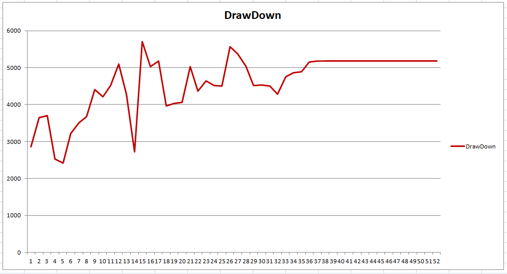 It is quite clear that holding for too long is pointless. Equity increases up to about 14 weeks and then starts to decline as fees eat into the profits. Draw down also increases up to a similar holding length of time. It seems clear that for this strategy at least holding for an absolute maximum of 14 weeks is the most cost effective – holding beyond that is a waste of time as you will make less money and more likely have higher draw down.