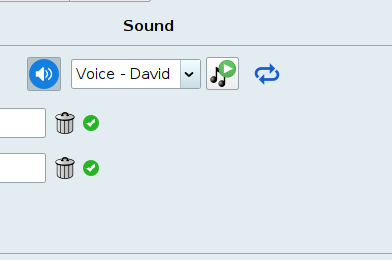 Al lado del sonido selecciona una de las voces por defecto o sube una desde tu Pc.