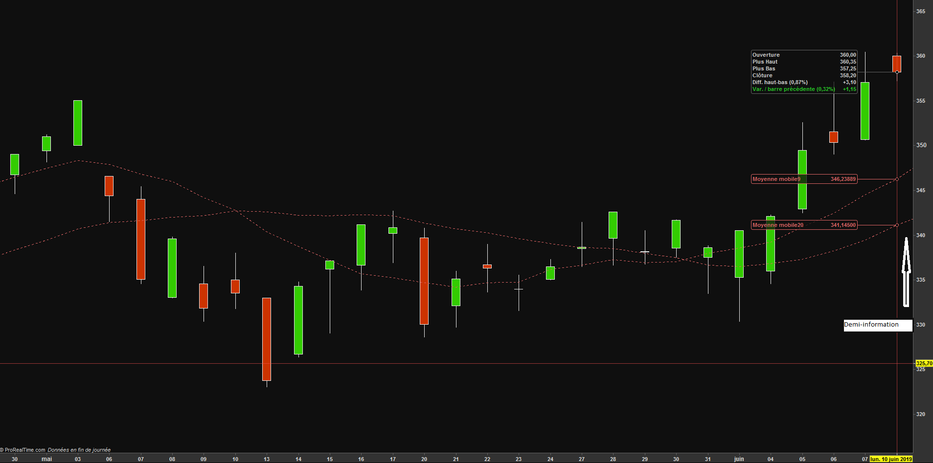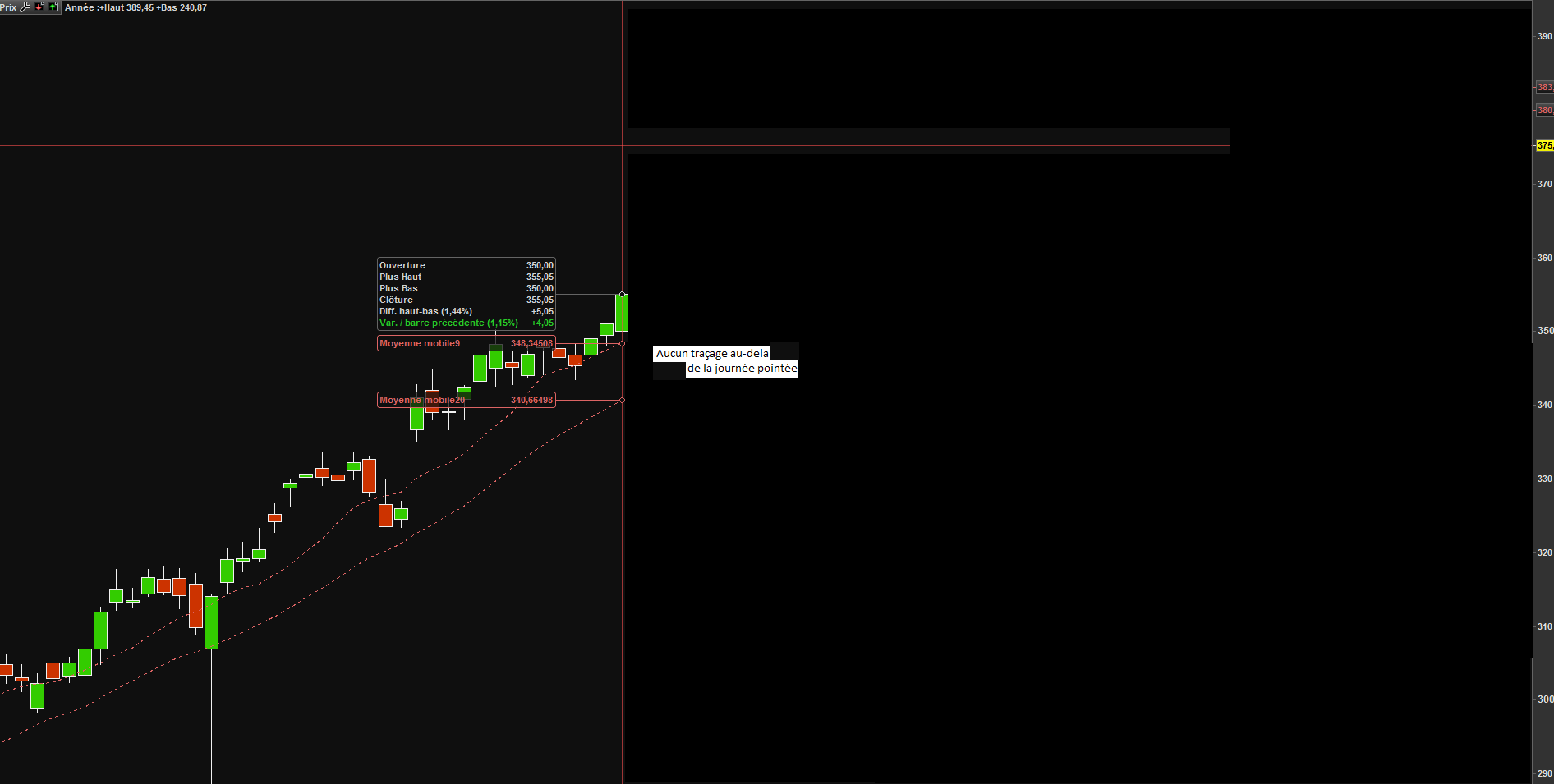 Au-delà de la ligne verticale du curseur, rien ne se trace, c’est le vide sidéral, l’inconnue au quelle nous sommes confrontés au quotidien. De voir la “demi-information” biaise totalement le comportement et l’analyse, lorsque on lit le passé d’une valeur.