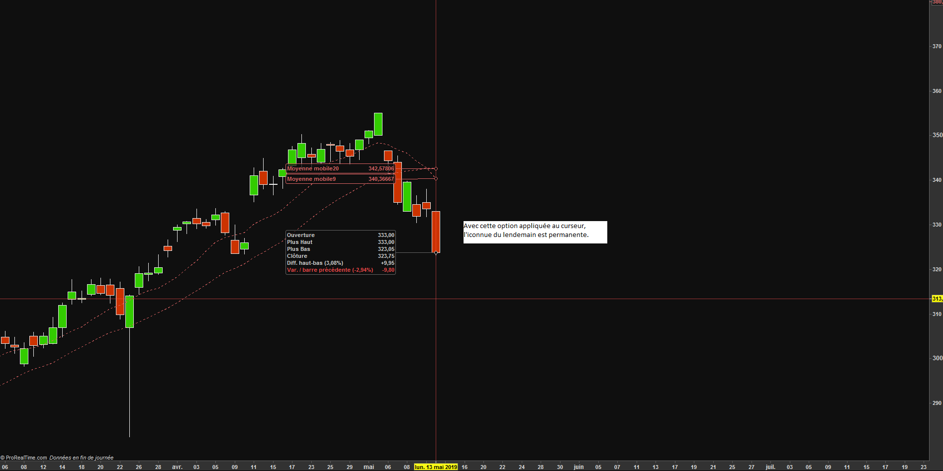 X déplacement vers la droite du curseur, “affiche/dé-cache” x_bougie du coté gauche. Coté droit, c’est le vide sidéral sans aucune demi-information.