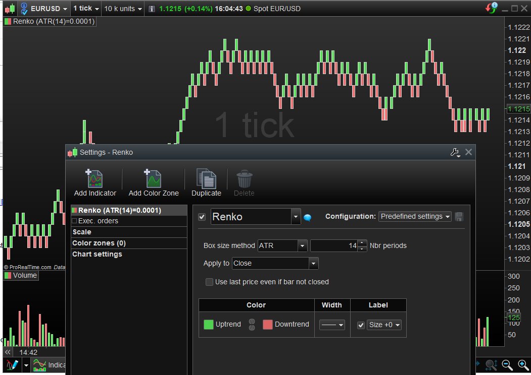 ProRealTime provides in the new version v11 the box size method ATR in addition to value and percentage.