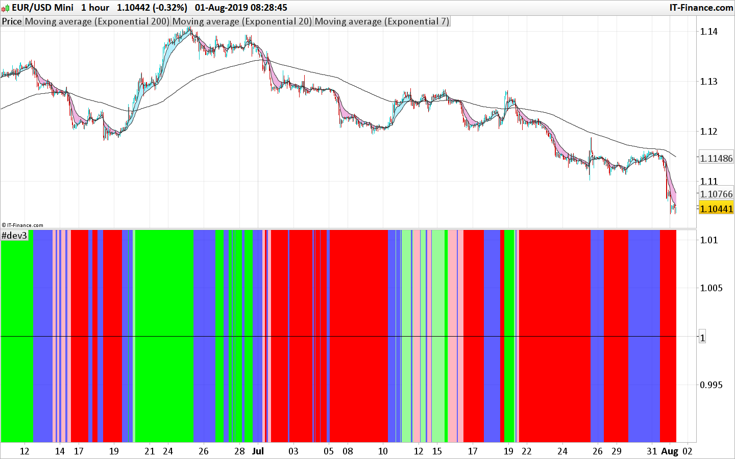Logiquement la partie entre les 2 lignes noires cad (MM7>MM20) lorsque Close<MM200 devrait apparaître en rouge foncé.