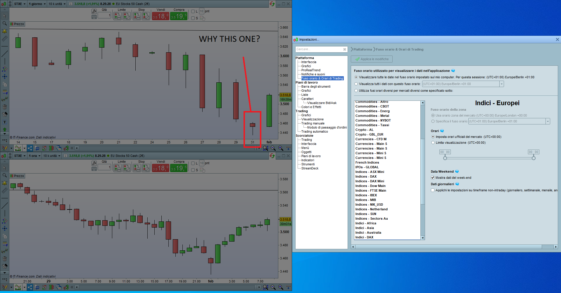 my problem is that I need all data on my chart but I don’t understand why data is correct on hour time frame (the data begins from 00.00 of monday), while on daily there’s a wrong candle on sunday.