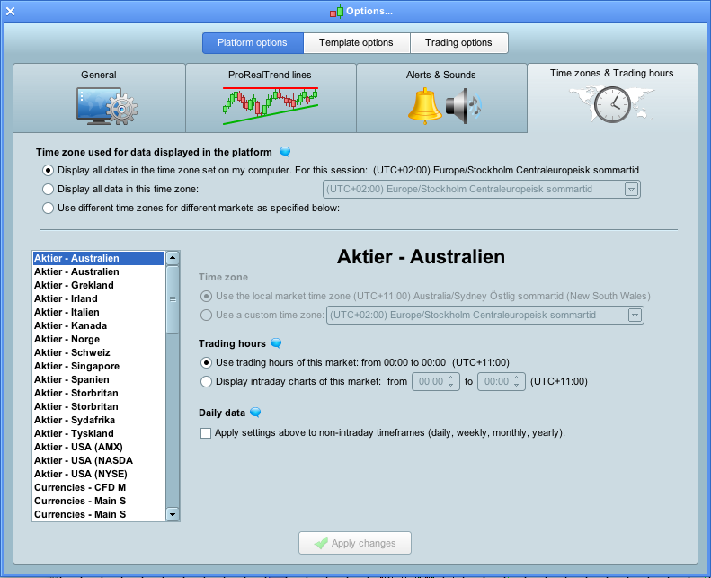 That is really strange. I’ve tried selecting different markets, time zones etc to see if its a specific issue to one of them but for me it always has that box regardless of what market you select (which makes sense). The only thing I can think of is maybe its something to do with what type of account you have perhaps ? It has that option available on PRT via IG on both CFD and Spreadbet accounts. You may have to contact support for this to get fixed unfortunately.