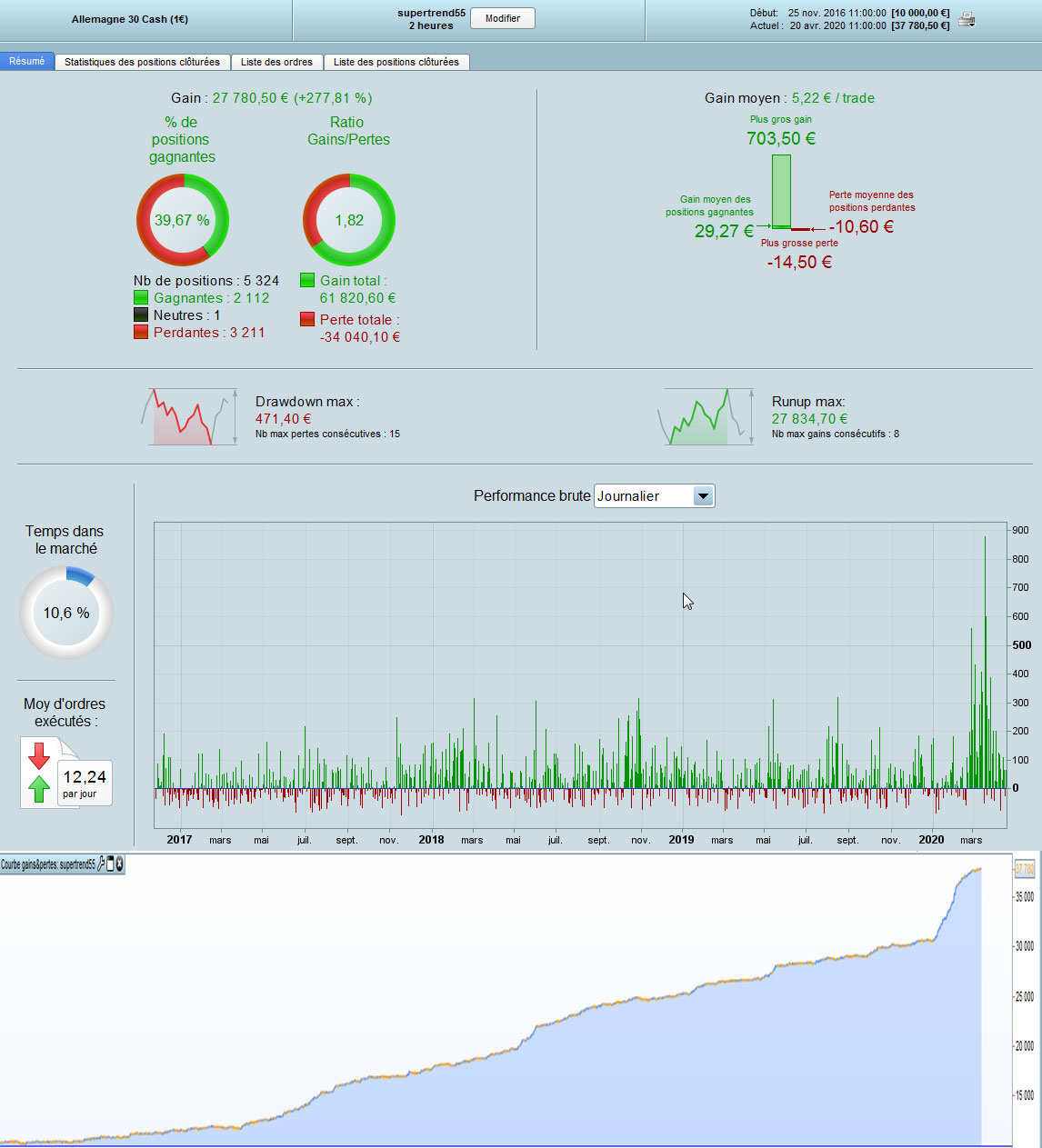 A very simple script (my 1st sharing) using the modified supertrend and on the DAX.