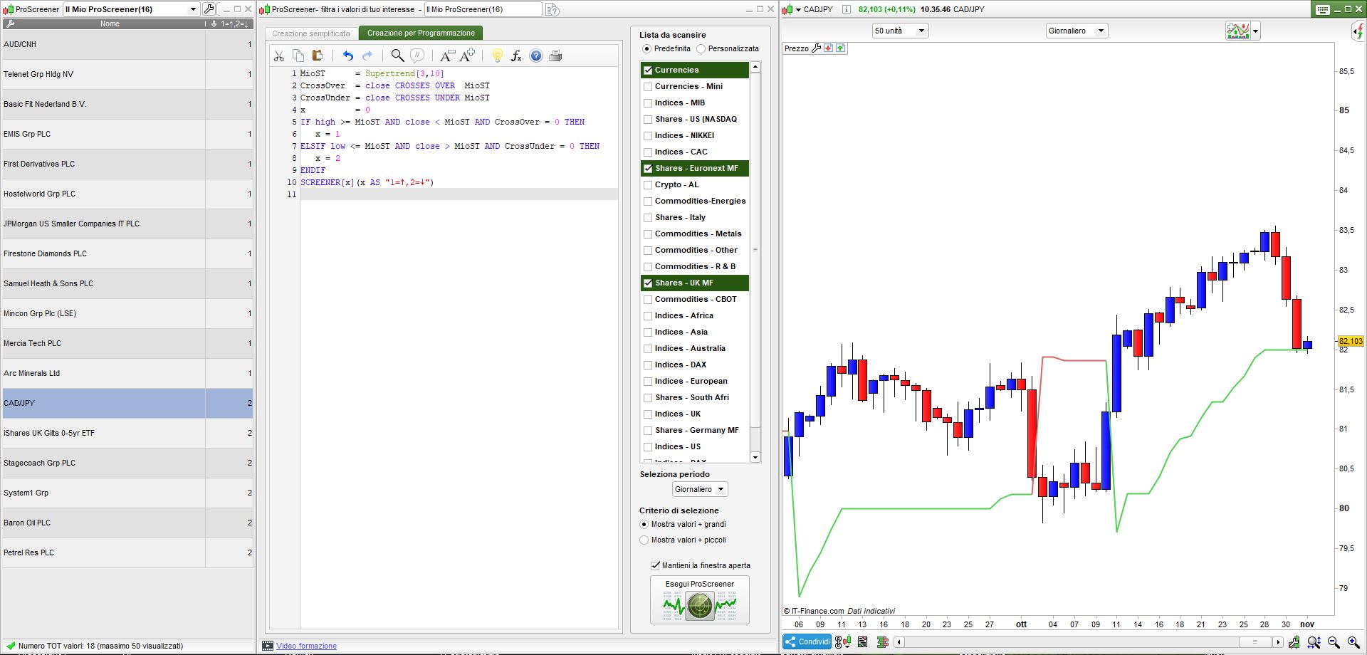 vorrei creare un ProScreener che mi segnali un movimento tipo la figura allegata, cioè una spike che non fa cambiar colore al super trend.