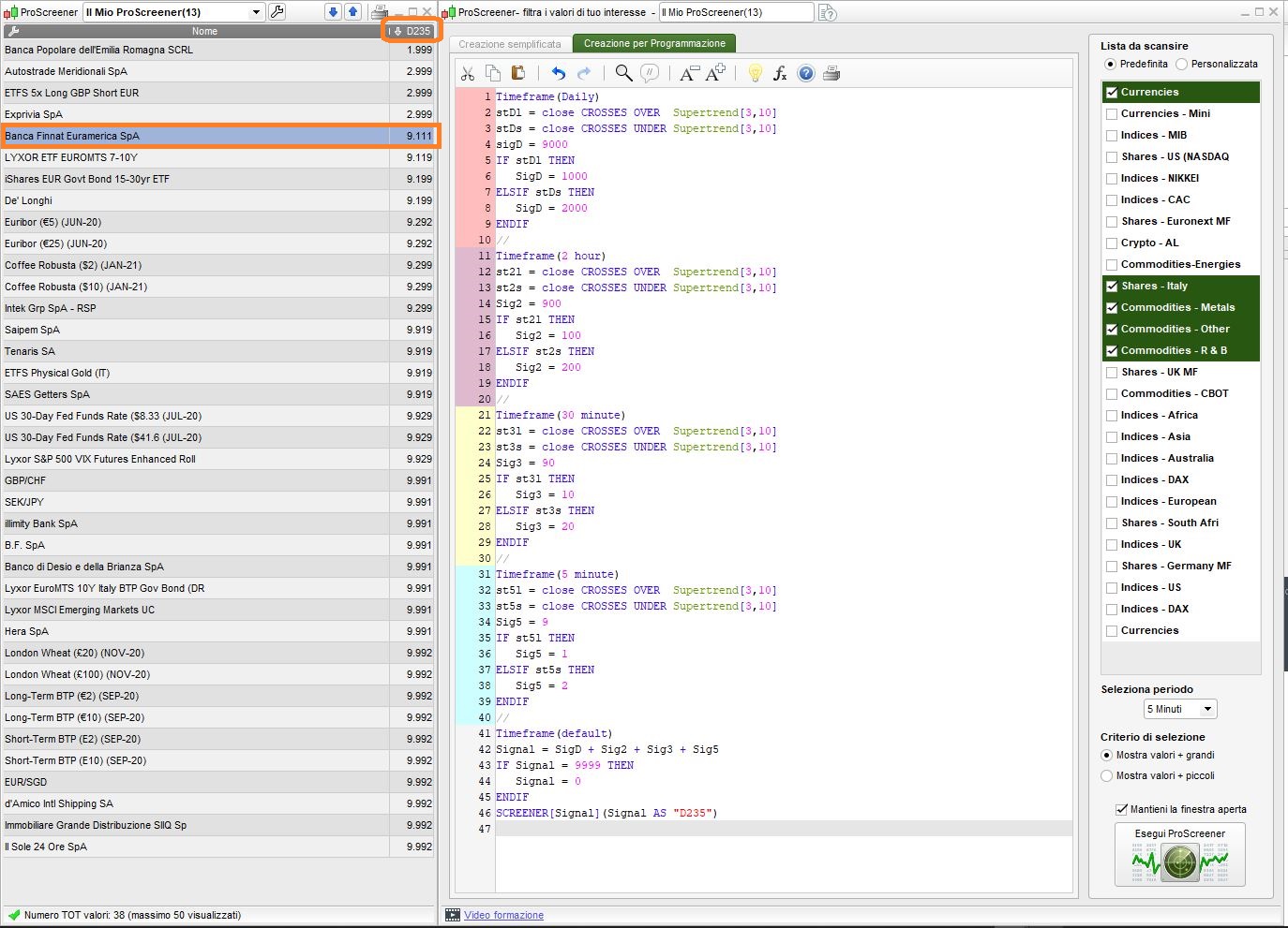 - che il proscreener controlli contemporaneamente su 4 tf : 5 min 30 min 2h daily