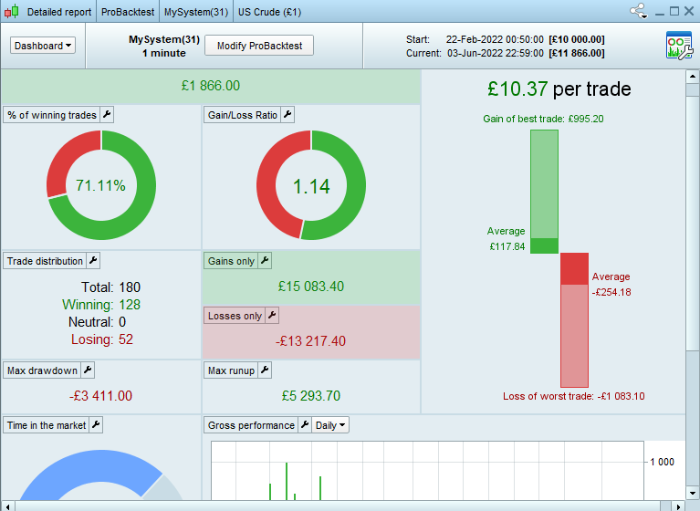 Regarding the green days > 100 in profit, please see attached screenshot of the detail report, a lot of bars are above the 100 mark.