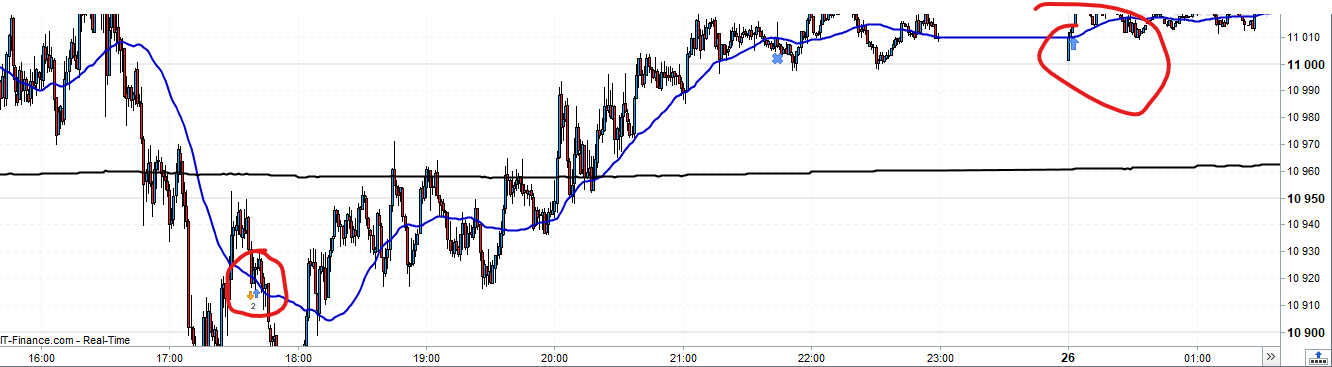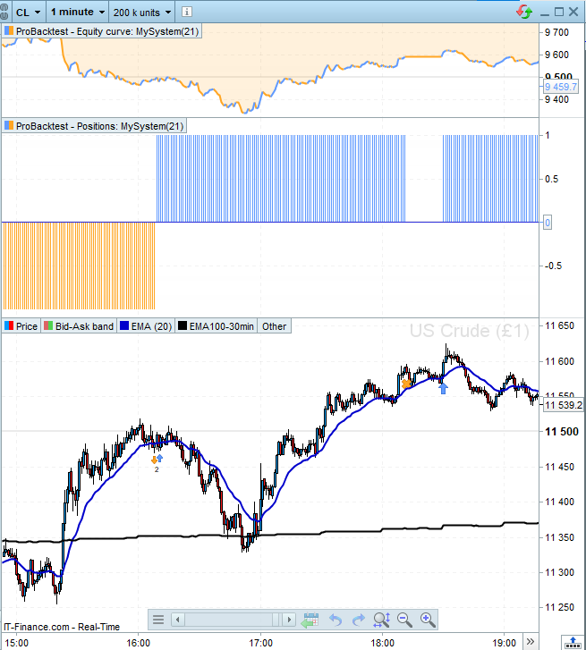 I find the profit strategy a bit confusing so I tried to simplify my system and changed a EMA 200 on a 10min timeframe into a EMA 2000 on a 1min (they are really similar).