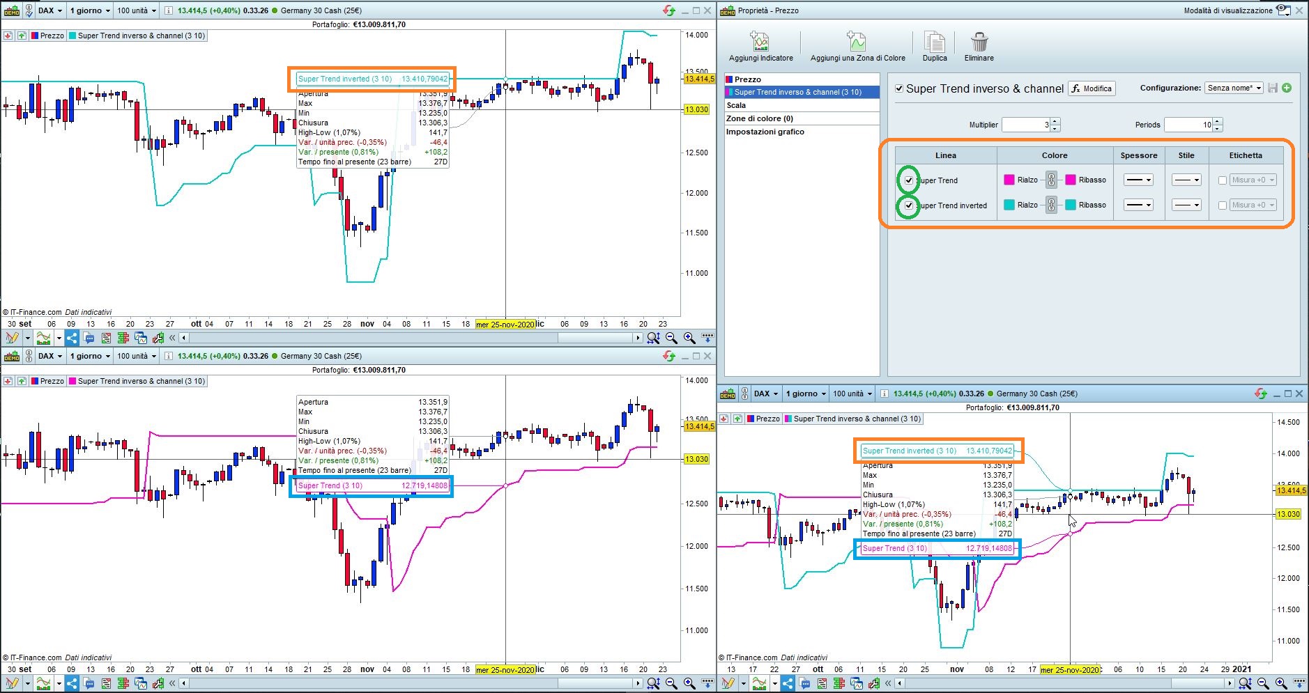 buongionrmo e grazie in anticipo per l’aiuto che mi potrete dare. E’ possibile Scrivere un codice per avere un supetrend di segno contrario a quello normale per creare una sorta di canale ? Grazie mille