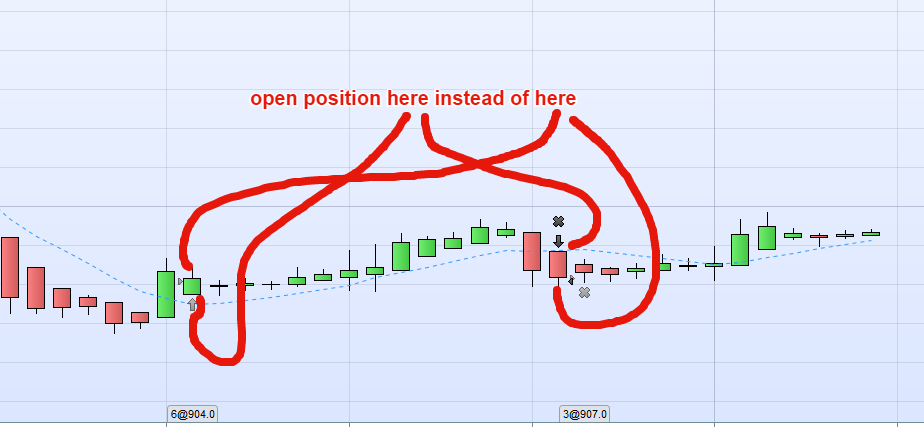 thank you it works great apart from the it opens the new position at the close of the candle instead of the open. How can this be changed? thank you