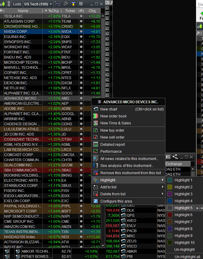 It can well be that the instrument you use there springs from a List where you applied the Grey colour to it. See below and AMD there which I made grey myself (rightclick on the instrument – Highlight).