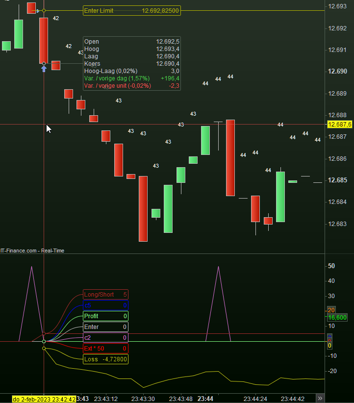 1st attached is where thee system was kicked out. You can see that at that moment it would have applied a Limit order (this would have been for Long but you can’t see that here). There is no entry because this “wanted to be” earlier. Also see the screenshot in the previous post.