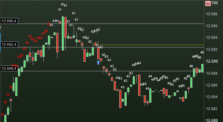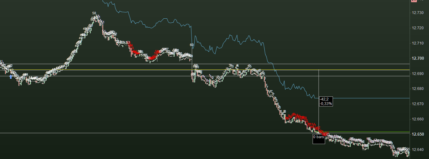 I drew lines there, the middle one at the exit of the bar initiating the Entry. The lines under and above it, are at a distance of 4 points. It would not make sense to not being able to trade that (SL yes, that I would understand). The SL btw, in this case was at ~ 42 points. You can see that in the 4th attachment, where this would-be trade would have gone out, accidentally in a loss. IOW, a too close SL can’t have caused it either.