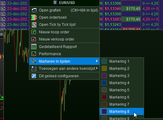 That second screenshot (previous post) shows how to select colors for instruments. They appear everywhere – also in the orders list. This is how my orders list turned purple for the EUR/USD. Or red …