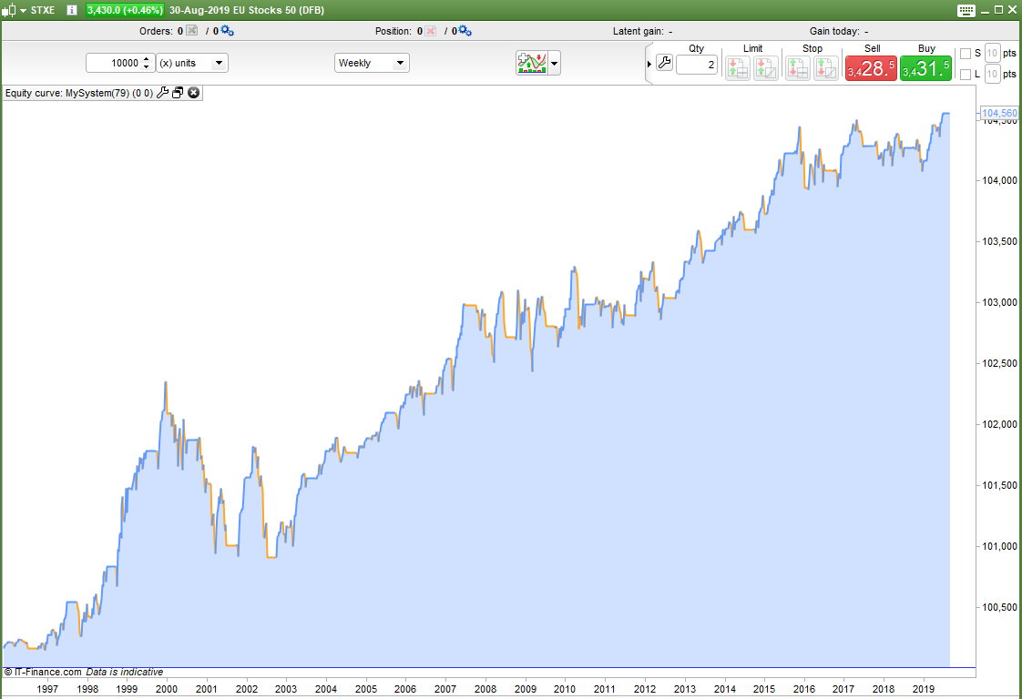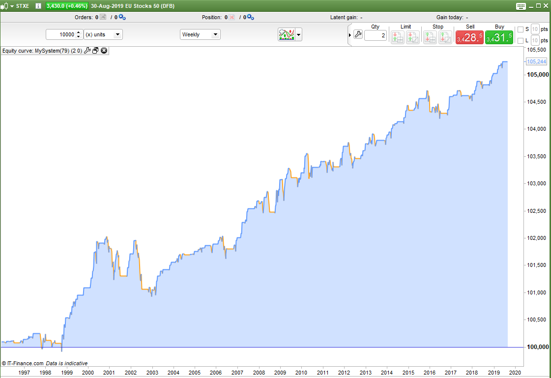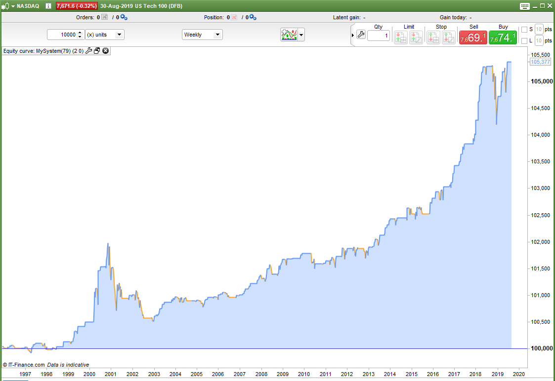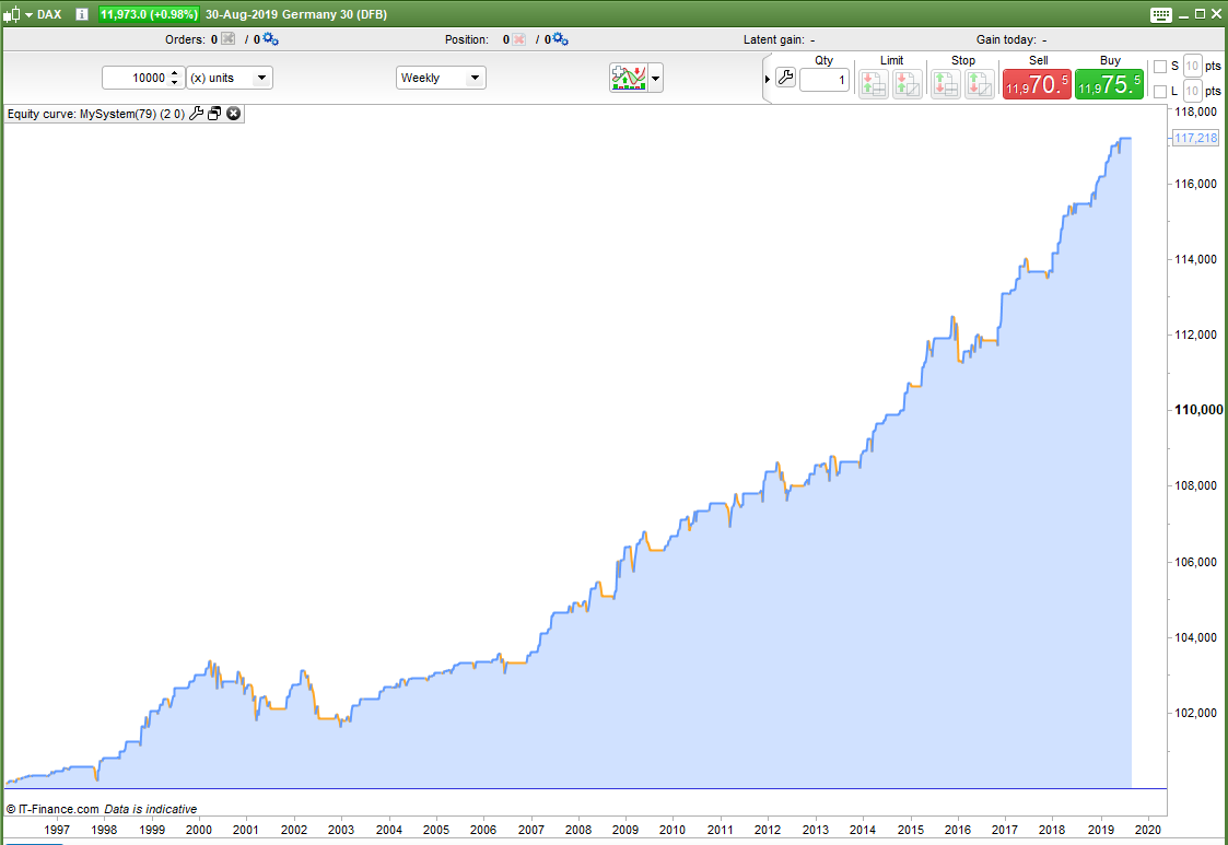 As well as trying to beat buy and hold one of our other aims should be to reduce draw down. With buy and hold you would need to sit uncomfortably through some rather long down periods watching your profits disappear before waiting for them to slowly return again. Beating buy and hold is one challenge but if I can create a robust strategy that will match it or get close to it or even just make a nice annual return but without any massive draw down then I have created a strategy that returns good value for money. A strategy is not only about the final number but about how you got there too.