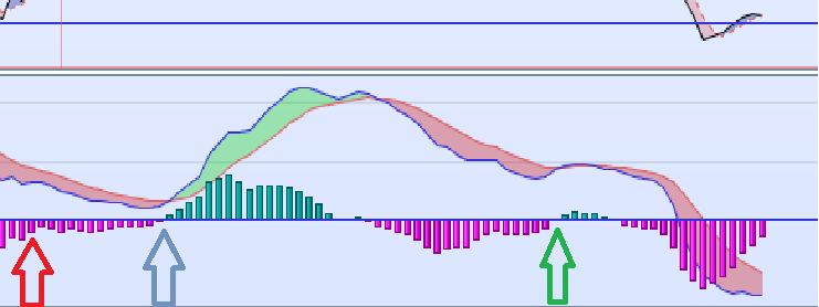 Par exemple sur l’image je lance le robot au niveau de la flèche rouge et je souhaite que l’ordre soit pris à la flèche verte, et non la bleue, soit au deuxième croisement du macd au dessus de 0.