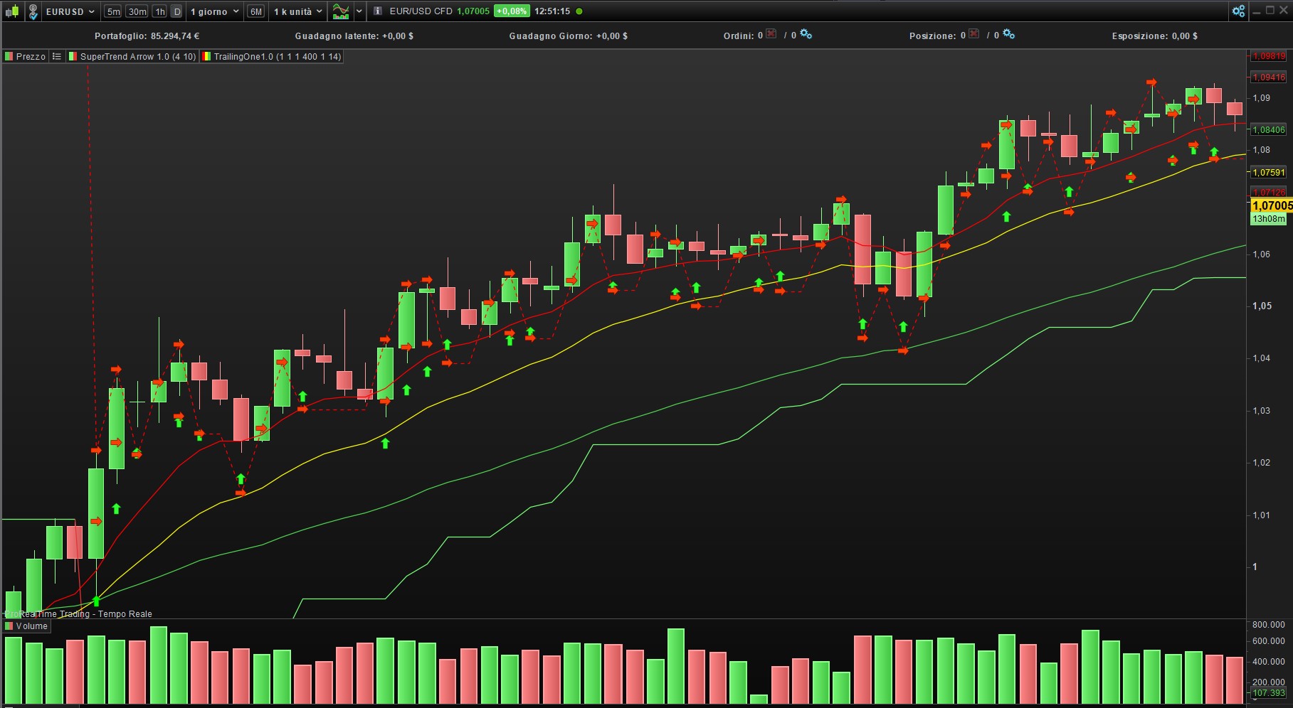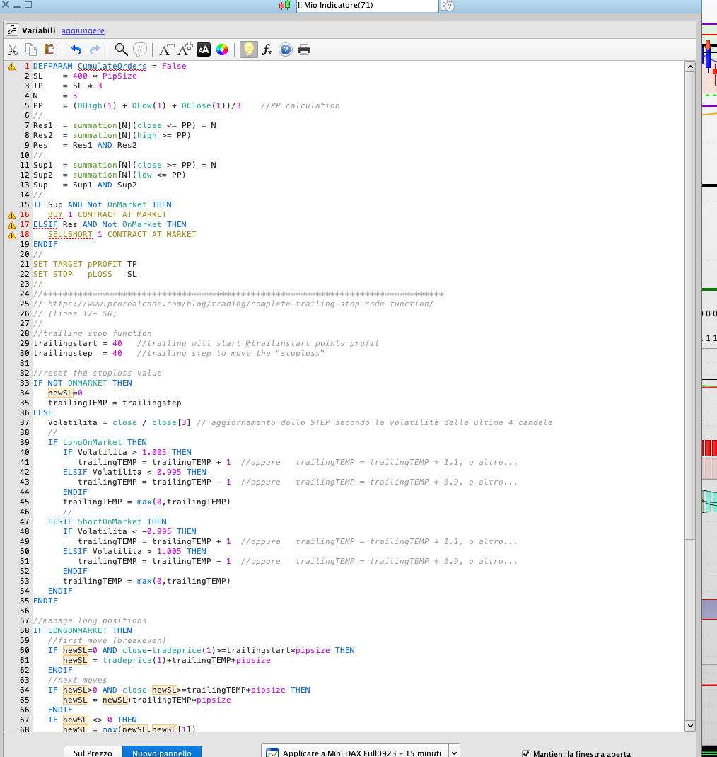 Dunque vi posto un primo codice di Trailing automatico basato sulla volatilità. Il trailing inizia a funzionare subito, senza soglie.