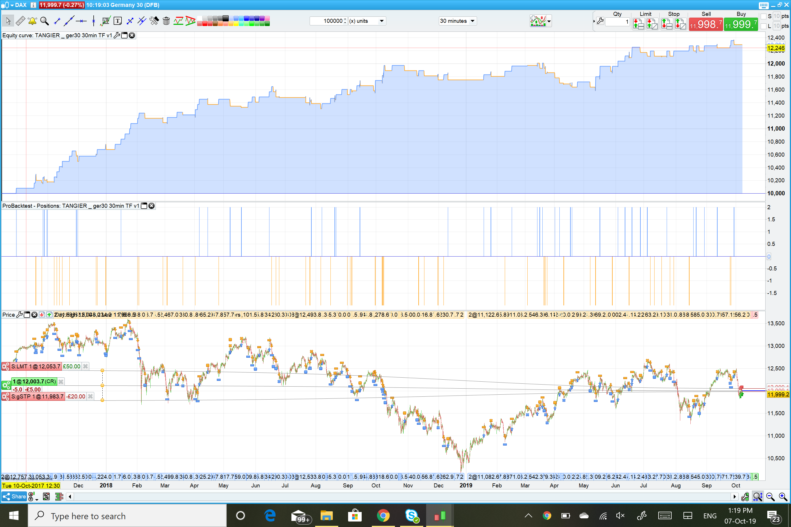 @jmf125 … apologies this took so long ,,, if you run disco’s original code on the CFD DAX ($5) contract with lot size = 2 then you will indeed get the same as discomusic got. In fact you will get a bit more than disco got over 100k bars! 🙂