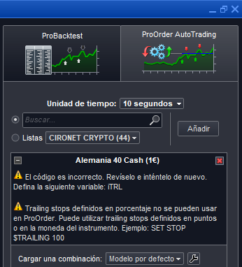 Hola a todos. Me gustaría saber como poder aplicar un TARGET %PROFIT a una estrategia en un sistema dentro de ProOrder, ya que te deja aplicar la orden ” SET TARGET %PROFIT ” en Backtesting pero a la hora de pasarlo a ProOrder te dice un mensaje que no es posible, únicamente “PPROFIT” o “$PROFIT”. Y me gustaría saber si hubiera alguna manera de aplicarlo mediante otras instrucciones o lineas de código. Gracias