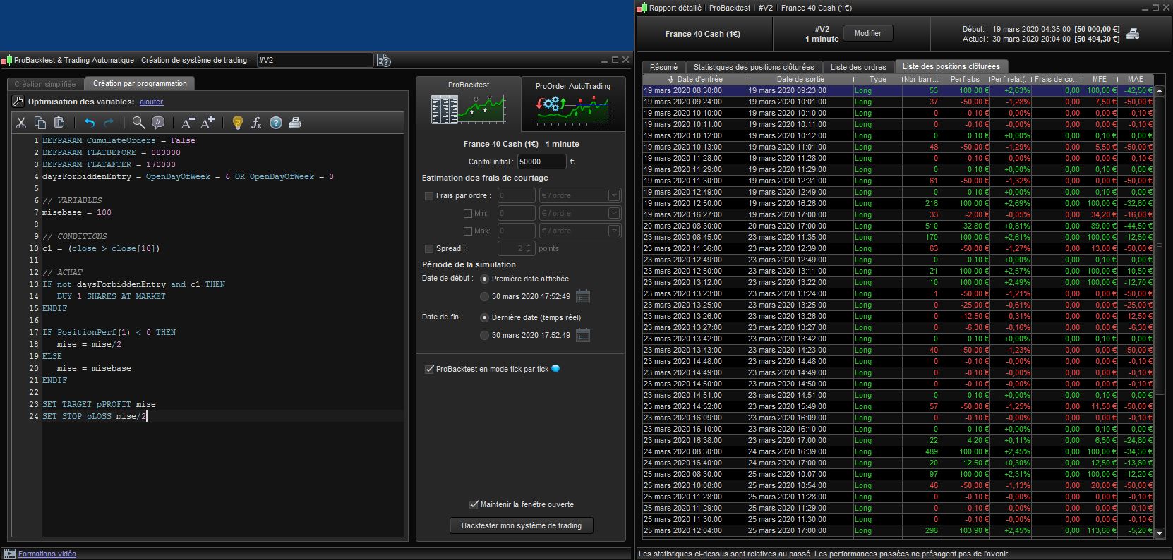 En effet, aucune position n’est ouverte car le cumul d’ordre n’est pas autorisé à la ligne 1, mais l’entièreté du code est tout de même lu à chaque bougie et heureusement ! 🙂