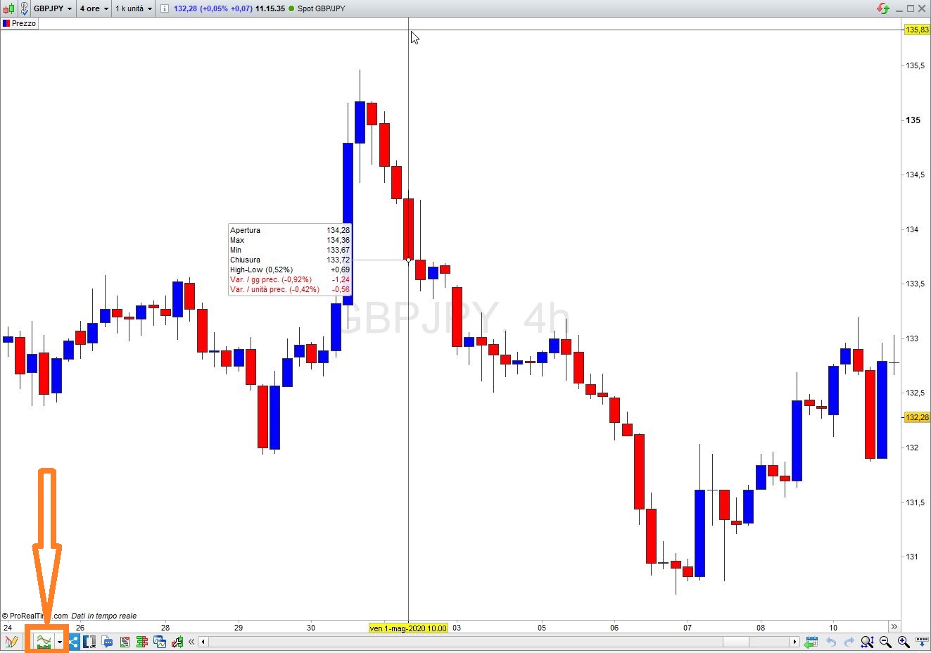 Clicca sul tasto per gli indicatori, si aprirà una finestra con 2 o 3 parti in alto, dipende dalla versione.