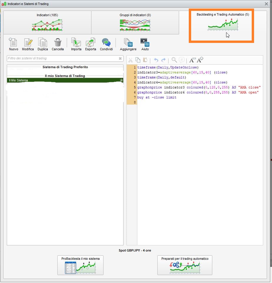 Buongiorno sulla mia prorealtime non c’è il tanto per il trading automatico e il backtesting come mai? Va attivato?
