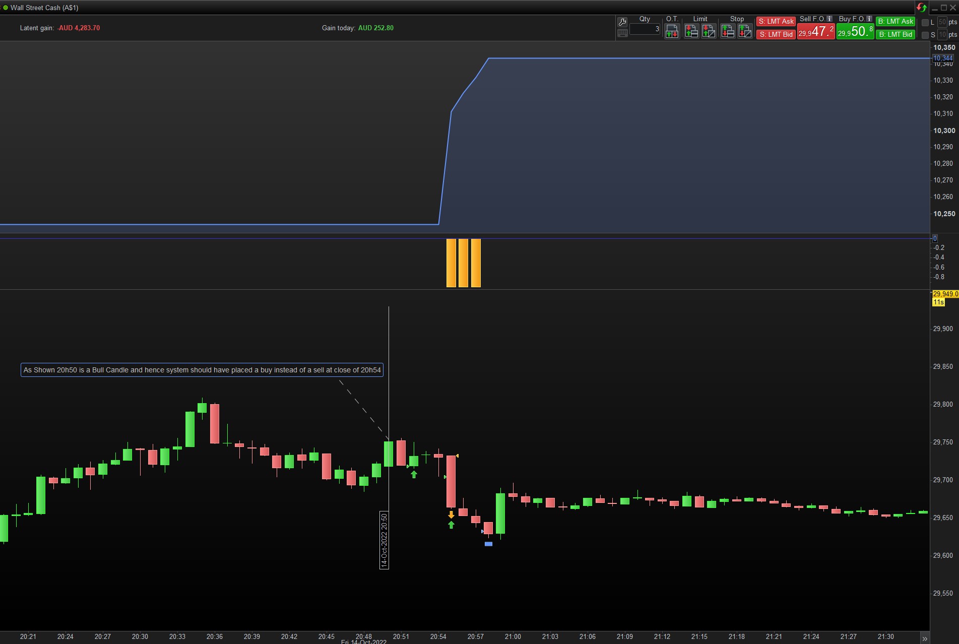 Eventually, even if averagerange is fixed and bear, bull, doji are reset to 0 each day, the trade for friday should remain short as if I read the relevant candle from my timezone, open is 29663.7 and close is lower by more than 5 at 29649.2, so bear=1 bull=0 for it.