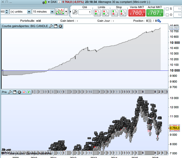 sur et certaine: sur les graphique historique ilya pas male de c strategy qui montre des superbes résultats ( pas seulement les strategy q leur créateur vous montre comme exemple des graphique bien choisi pour vous aveugler…)… mes sela appartient au passer! essayer aujourd’hui par exemple de prendre des positions a base de configurations graphique classic…ou encore a base de bougies japonaise seulement…esseyer duplique les tactiques de chartisme ou les vagues de wolf qui marche si bien ilya 15 ans sur des unité de tamp intraday! simplement essayer-sela ne march plus. le marché change et évolue de jours a jours – et ceci applique avant tous de analyser les marches en trouvent en permanente des nouvelles configurations et moedlles qui represent bien sur avant tous une logique ou une psychologie…et après tous-un taut de réussite élever.