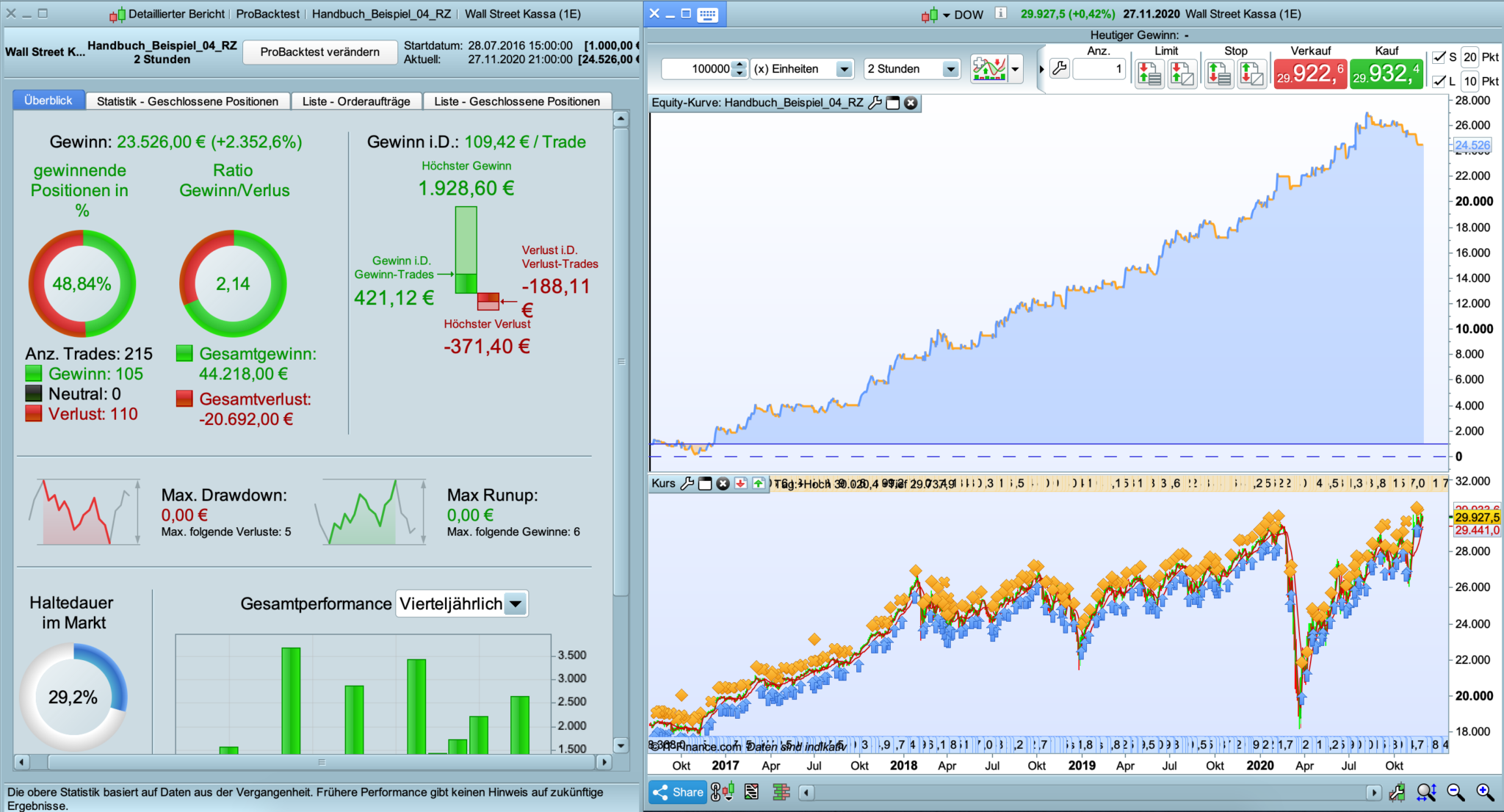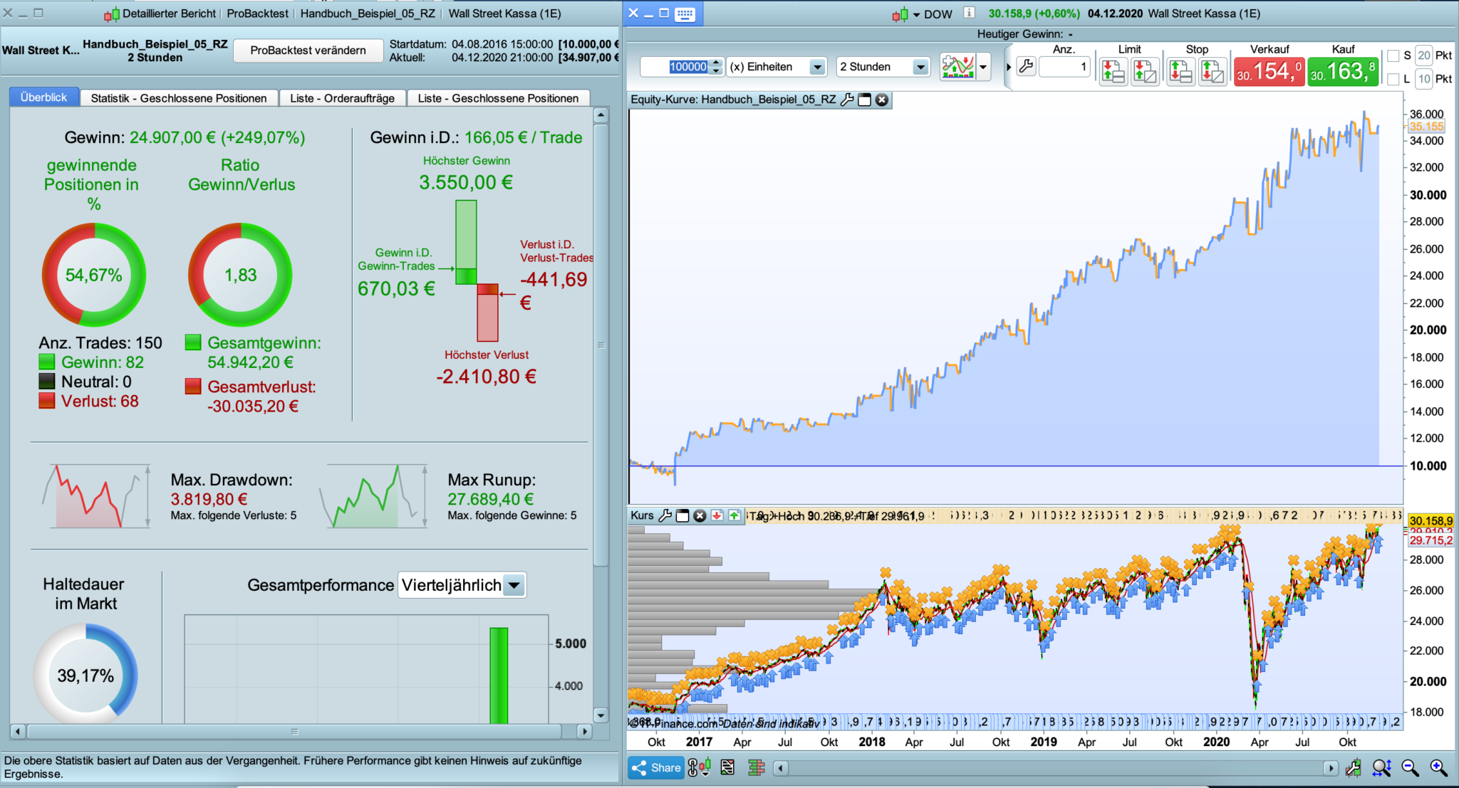 At the moment i learn from reading the First pages PRT-ProOrder_Workbook pdf and making some simple experiments and different markets and Timeframes an try to tuning them up. Here is what i found on the Dow on 2h Timeframe with a spread of 2. I wanted to ask if you see potential in this system or not? And when Not/yes, then why.